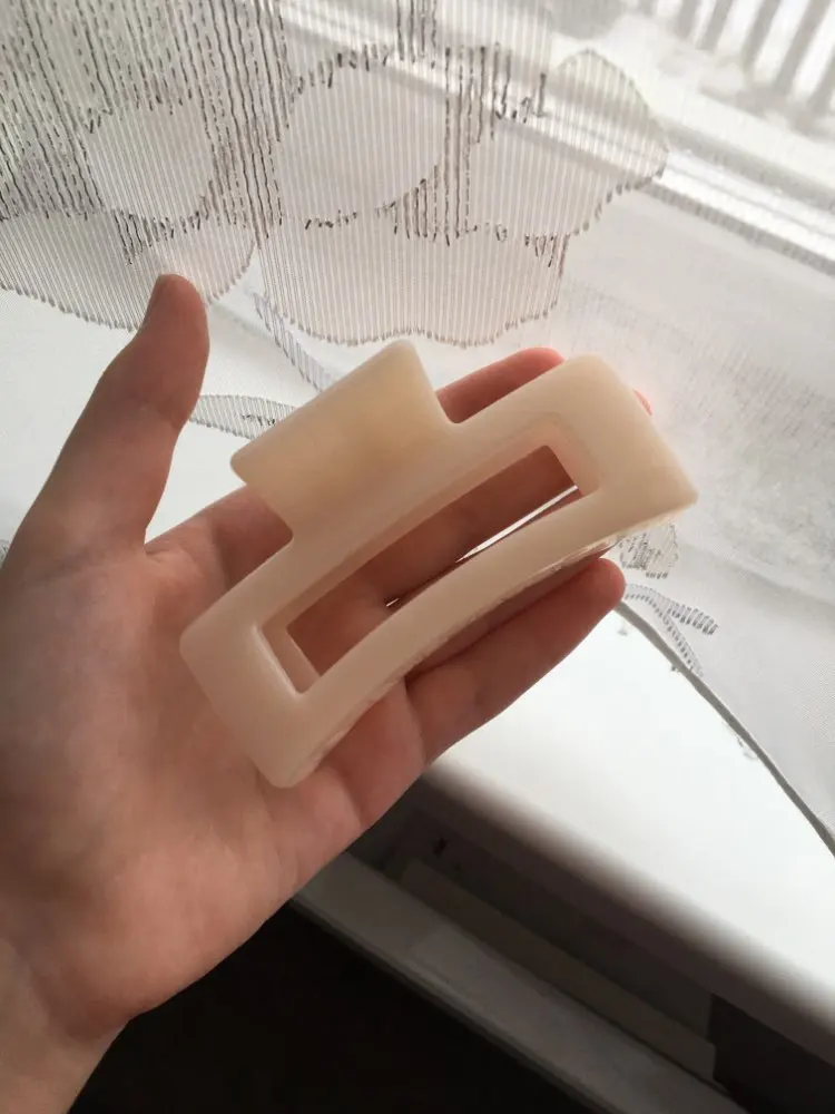 Хорошая заколка, волосы держит на отлично, не тянет т.к. не тяжелая. Пластик толстый. Запаха не было совсем. Есть дефекты по корпусу, но я их уберу. Также нет заглушки со второй стороны гвоздика где пружинка, гвоздик будет вылетать. Но это почти у всех краников. Продавец отправил быстро. Пришла в объединённой посылке быстро.