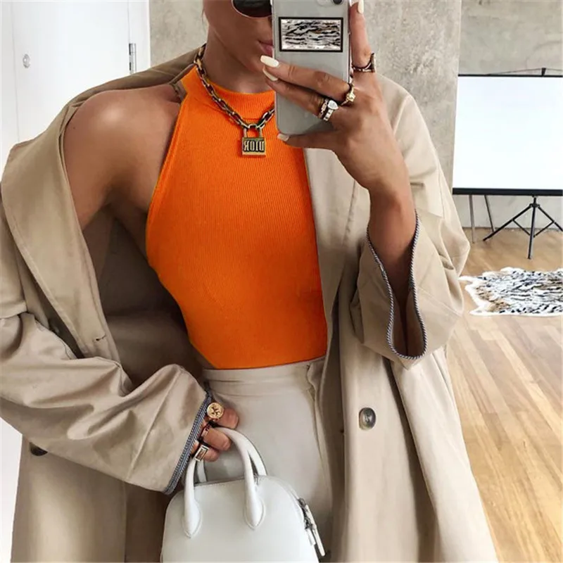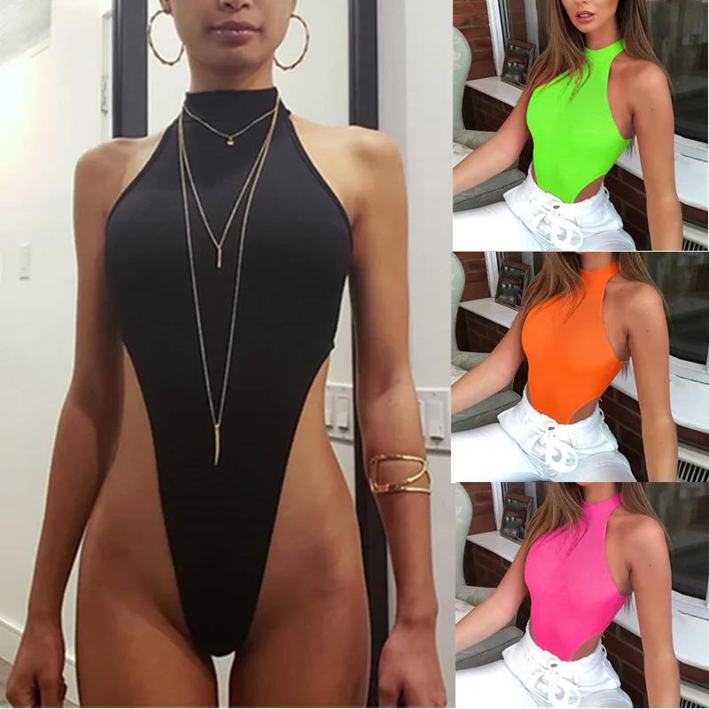 Боди с высокой талией, летнее неоновое облегающее Боди без рукавов, с высоким вырезом, для клуба