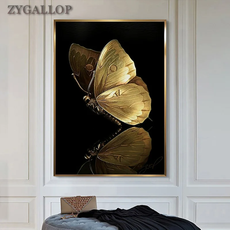 Золотой живопись на холсте бабочка на стене черный и золотой стены плакаты и принты современного искусства стены роскошные украшения картинки