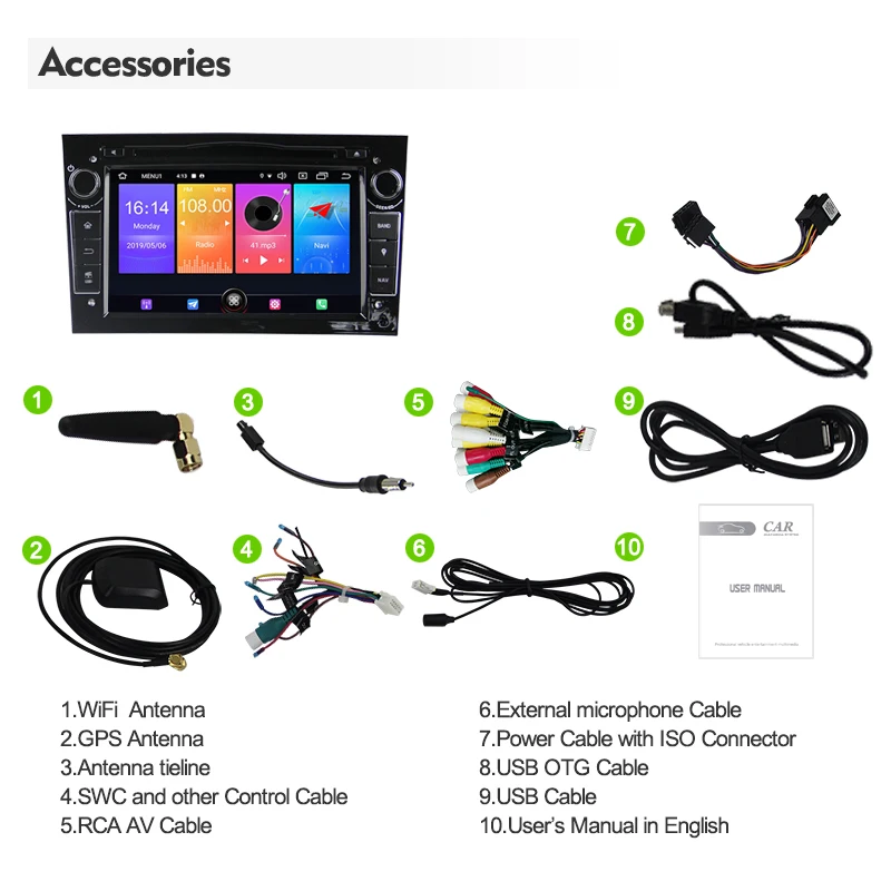 Функции:DVD / GPS / Bluetooth/Радио/RDS/встроенный WiFi/зеркальная связь/DSP/Встроенный CarPlay / USB / SWC / AUX in/игры/Встроенный Can-in автобус/8 цветов Кнопка светильник видео-вход: аудио-вход камеры: AUX1 видео-Выход: video1/video2 аудио-выход: FL/FR/RL/RR/сабвуфер BT версия: 4,0