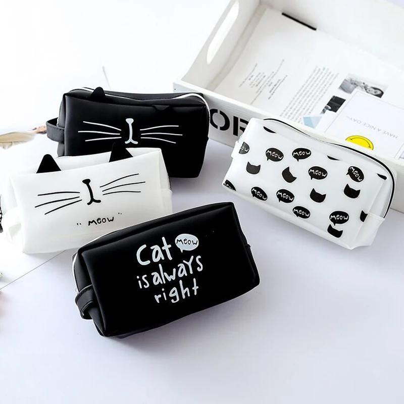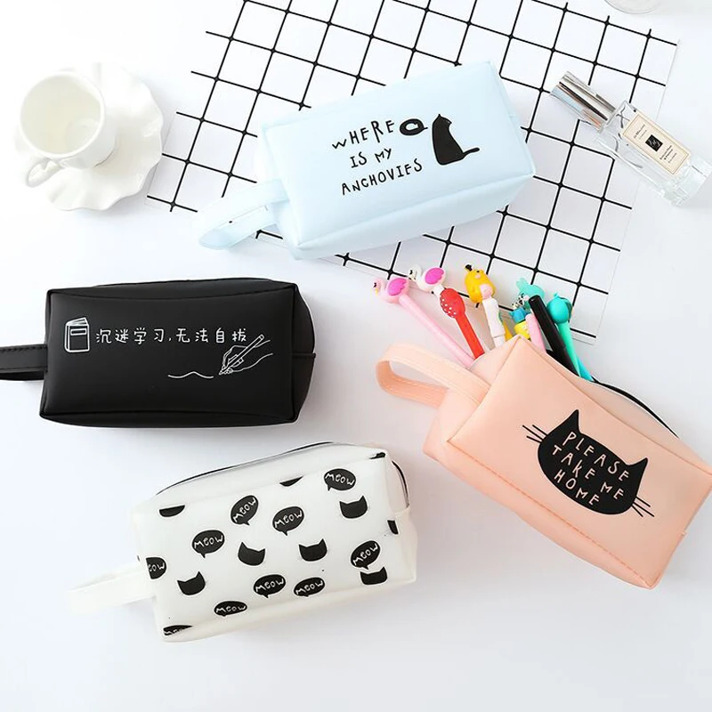 5pcs Kawaii Silicone Pencil Case Cute Cat Pattern School Pen Box Office School Stationery Gift