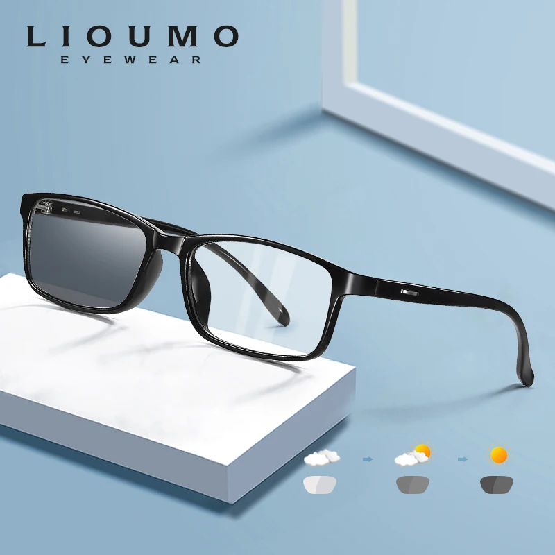LIOUMO Квадратные ретро очки для мужчин и женщин, мужской синий светильник, блокирующие линзы, фотохромные очки, плоское зеркало, 100% антиуф очки