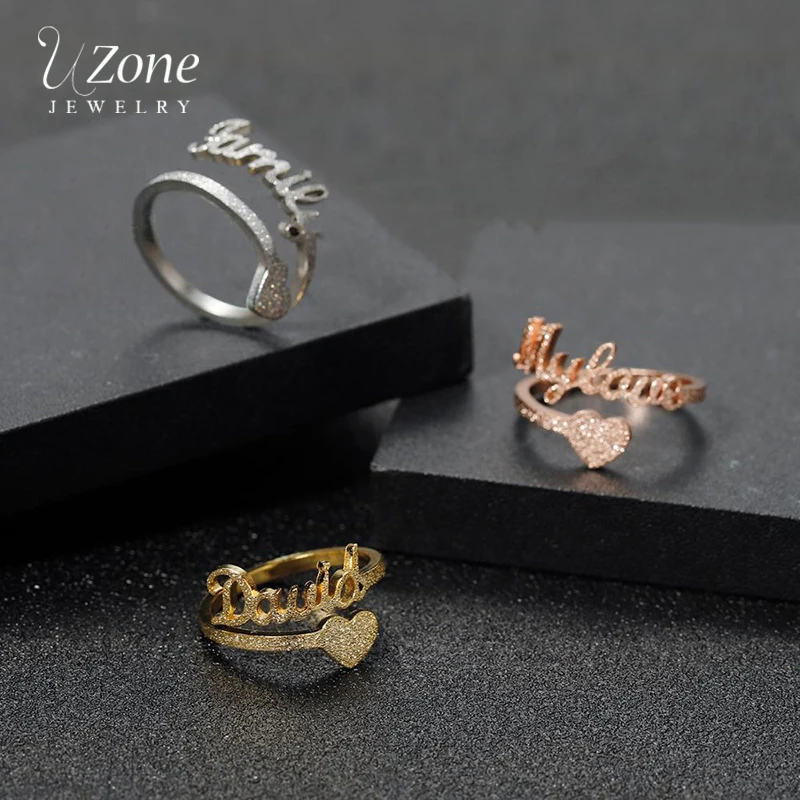 UZone на заказ матовая любовь, сердце, корона, именное кольцо из нержавеющей стали, персонализированные буквы, регулируемые кольца для мужчин и женщин, подарок ручной работы