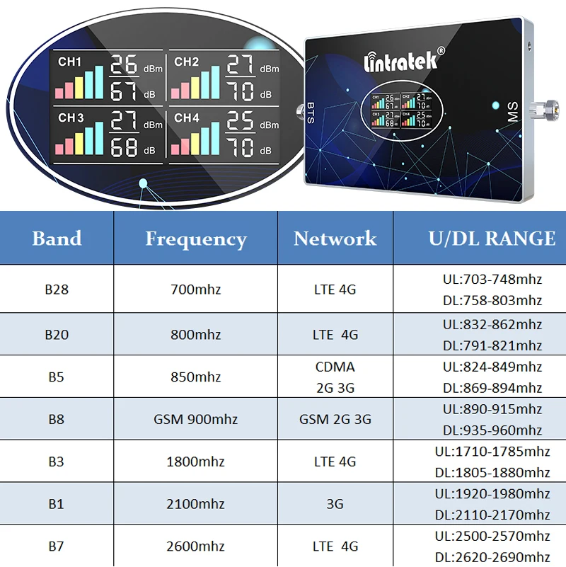 Четыре группы Сотовая связь Усилитель GSM 2G 3G 4G B20 LTE 800 900 1800 2100 2600 мобильный телефон 850 Усилитель сигнала 4G повторитель сигнала B7 2600 МГц Lintratek s6