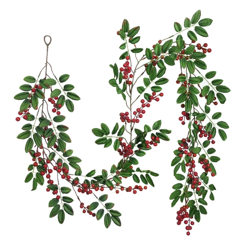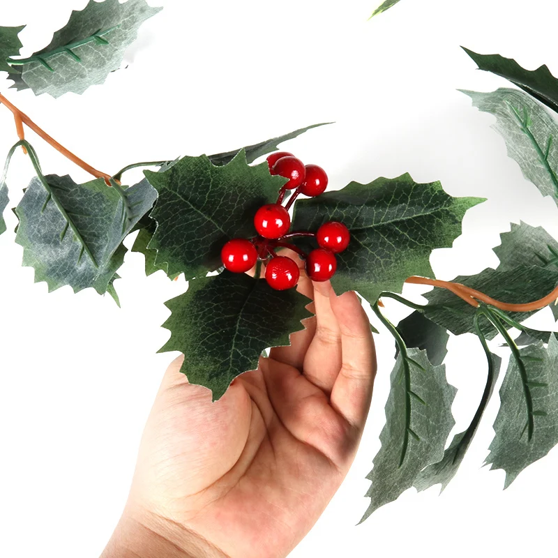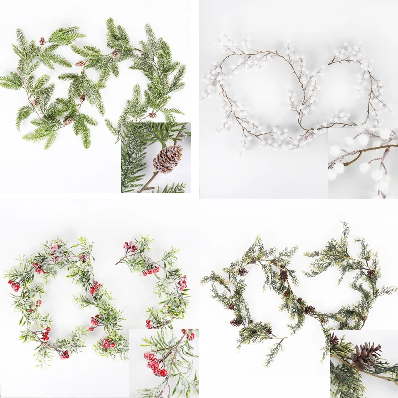 Рождественские красные ягоды, зеленые ветки снега, рождественские украшения для дома, рождественские искусственные растения, венок, гирлянда