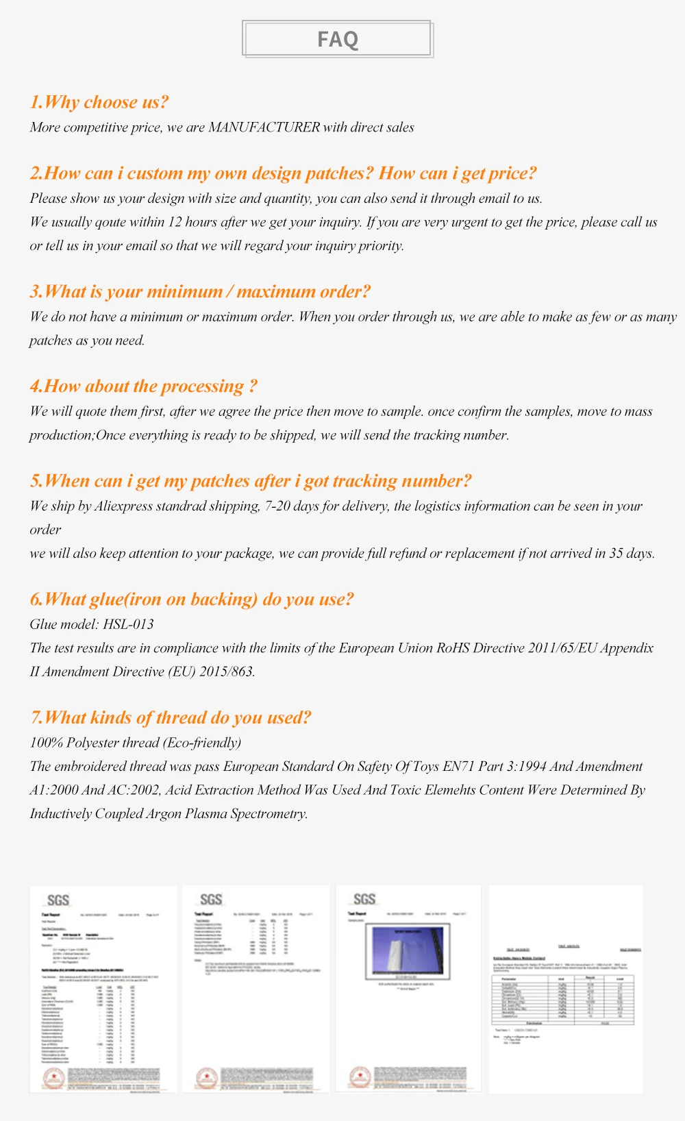Бесплатная цитата: если вам нужны Заказные патчи, вы можете предложить свое предложение в течение 12 часов.