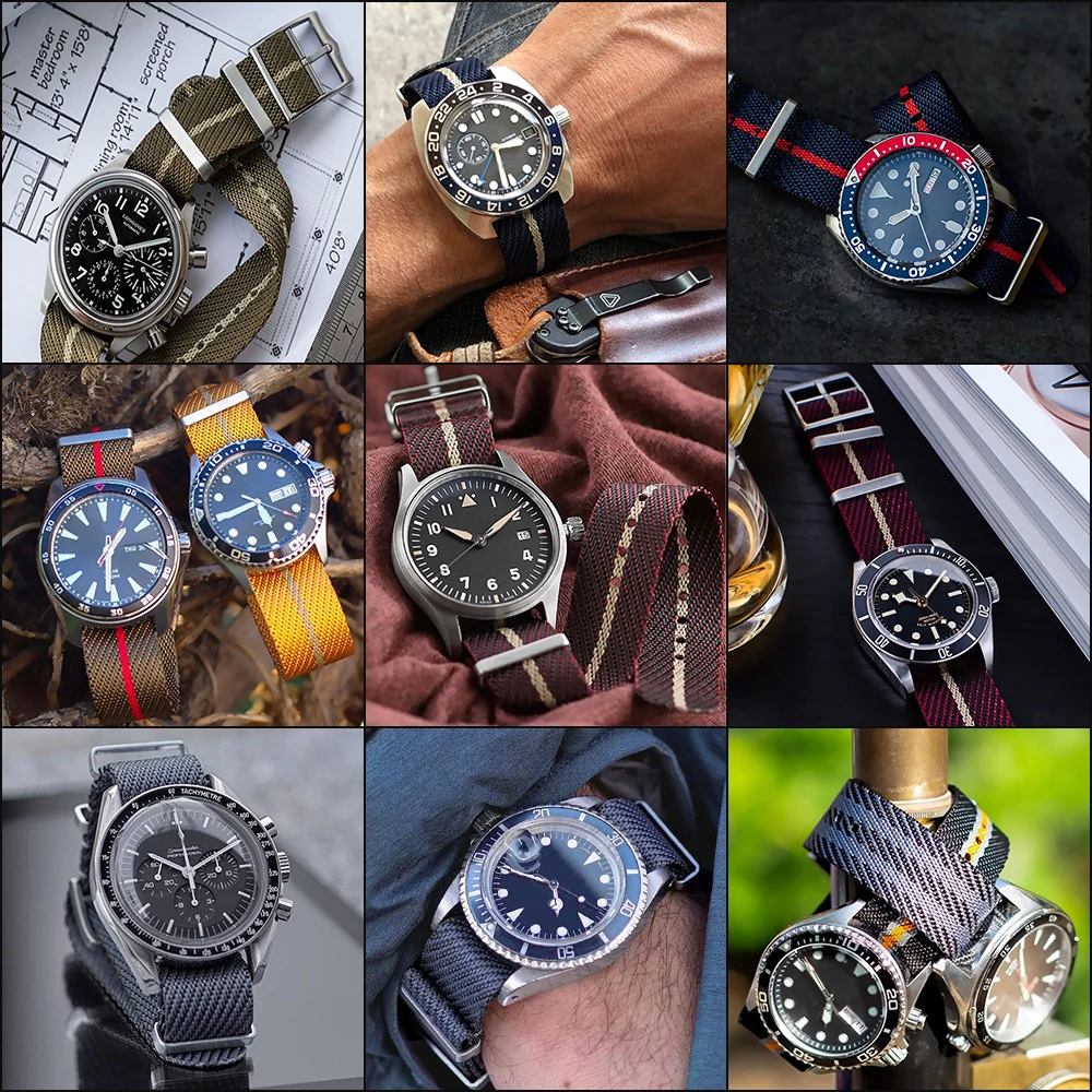 Военный полосатый ремешок Zulu НАТО, нейлоновый ремешок для часов Tudor, 20 мм, 22 мм, подвижное кольцо, военный браслет