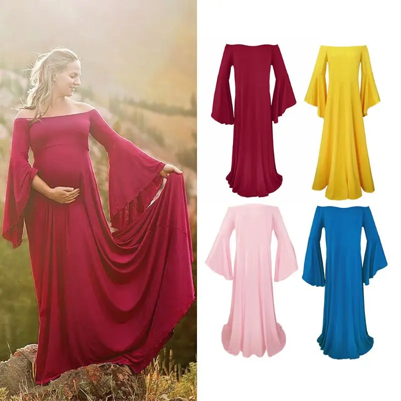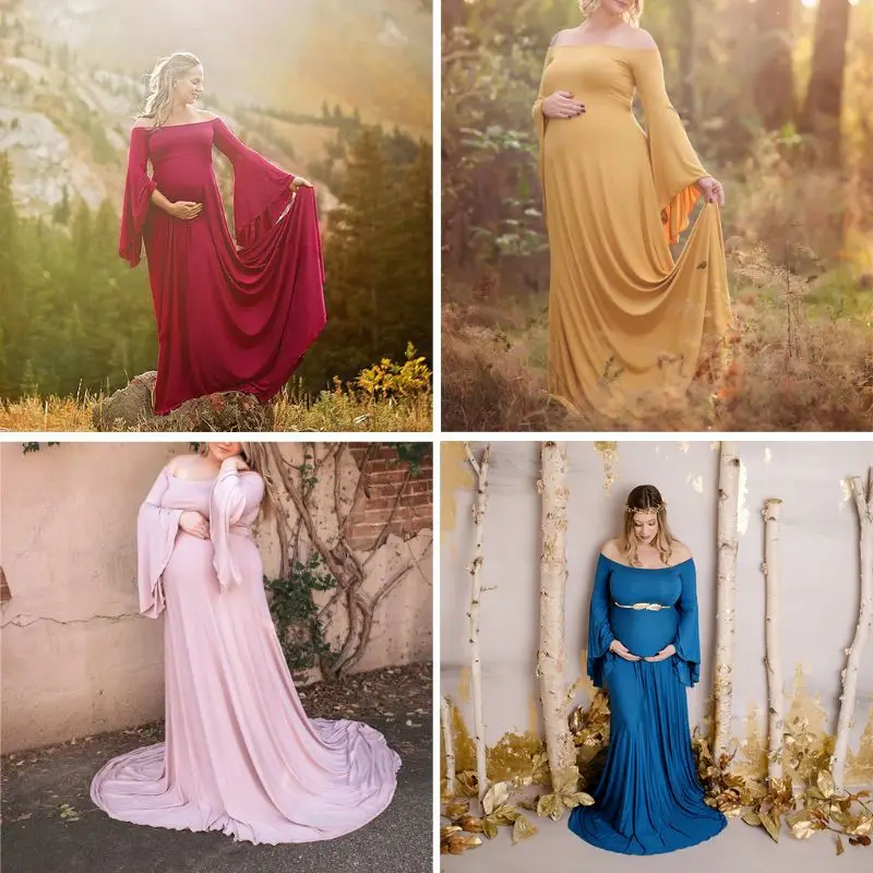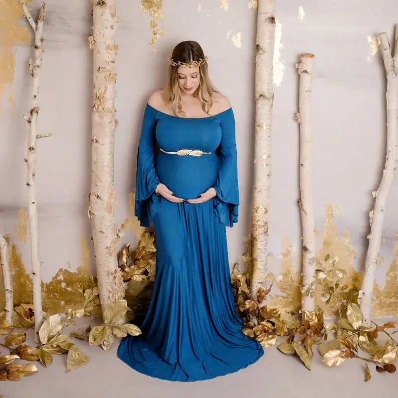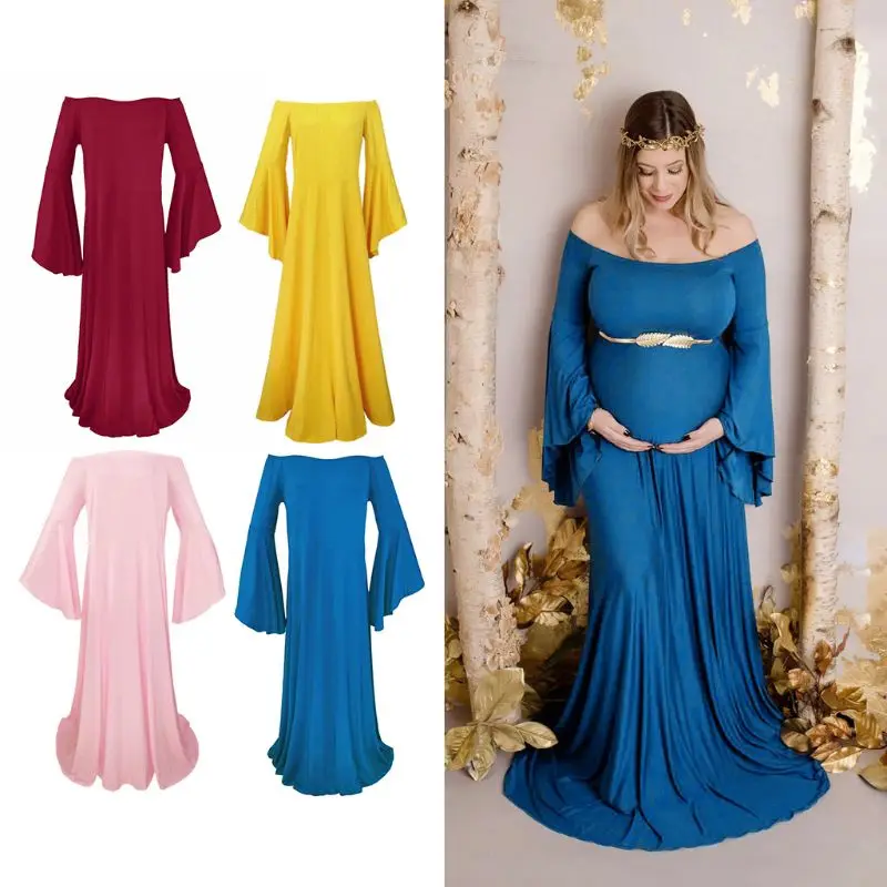 Длинные Материнские фотографии реквизит платье для беременных для фотосъемки с открытыми плечами платья для беременных женщин платье макси для беременных