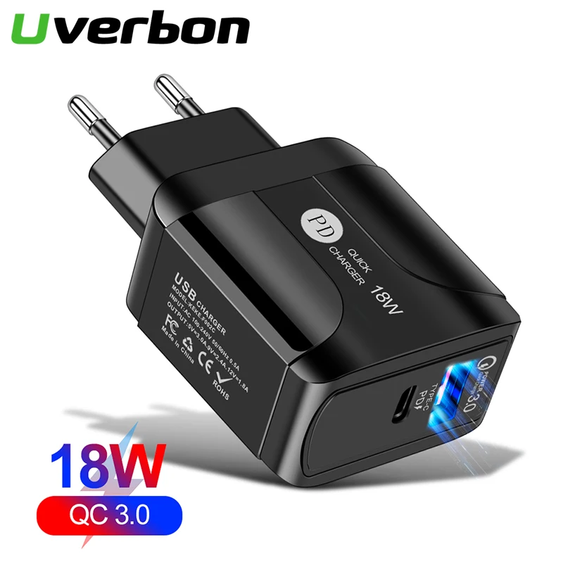 Быстрая зарядка USBType-C с разъемом EU, US, UK, портативный адаптер для телефона 18 Вт, умная зарядная головка для iPhone12, Samsung, Xiaomi, быстрая зарядка