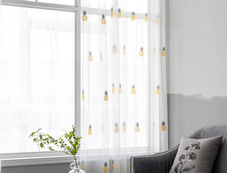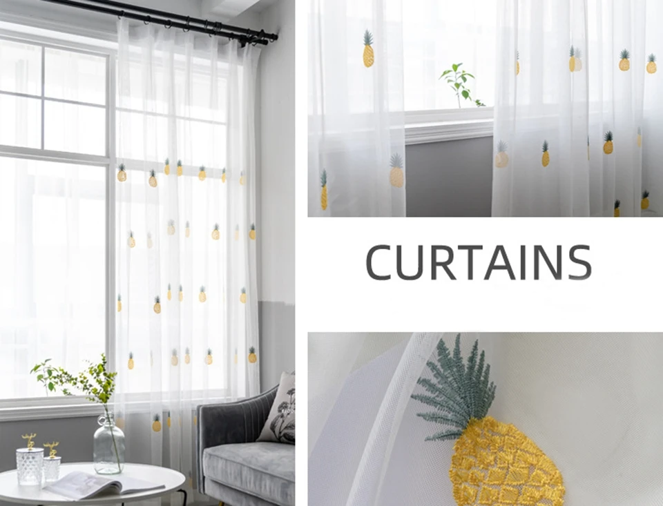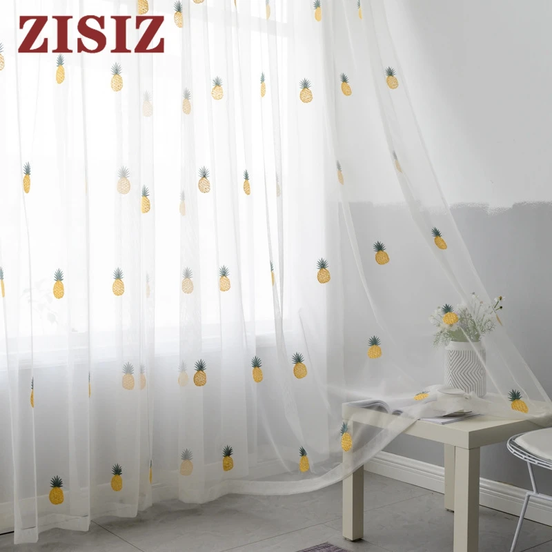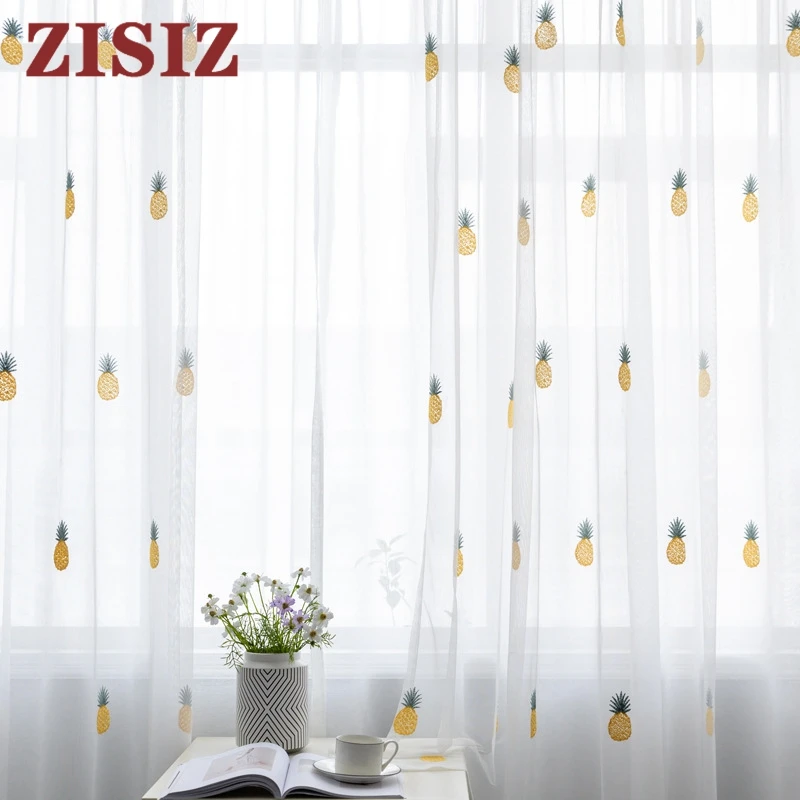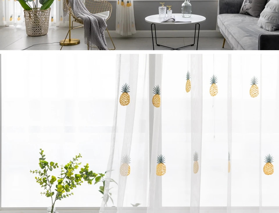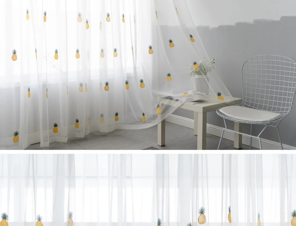 Тюлевые шторы с вышивкой, прозрачные Занавески для спальни, гостиной, детской комнаты с ананасами, украшение для окна