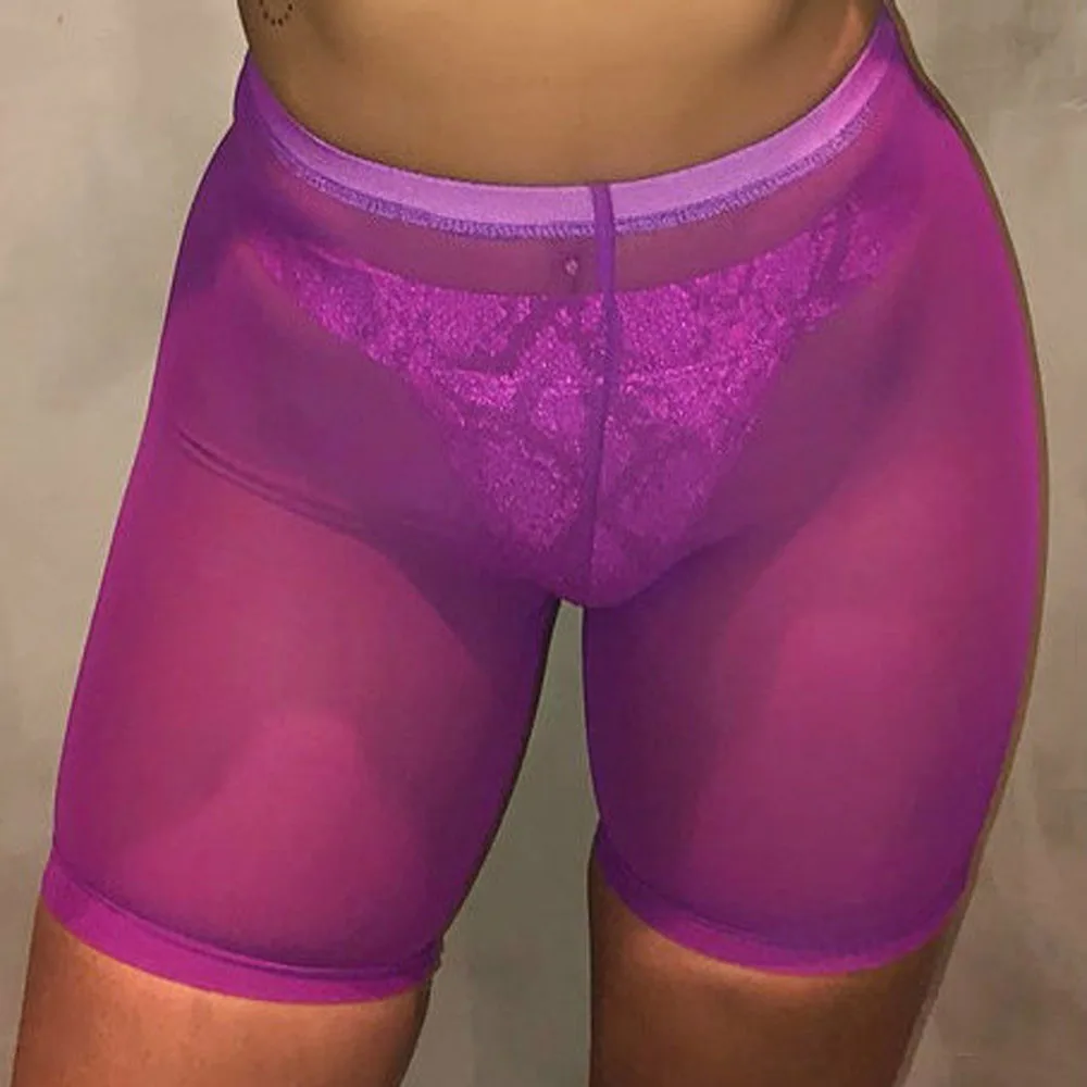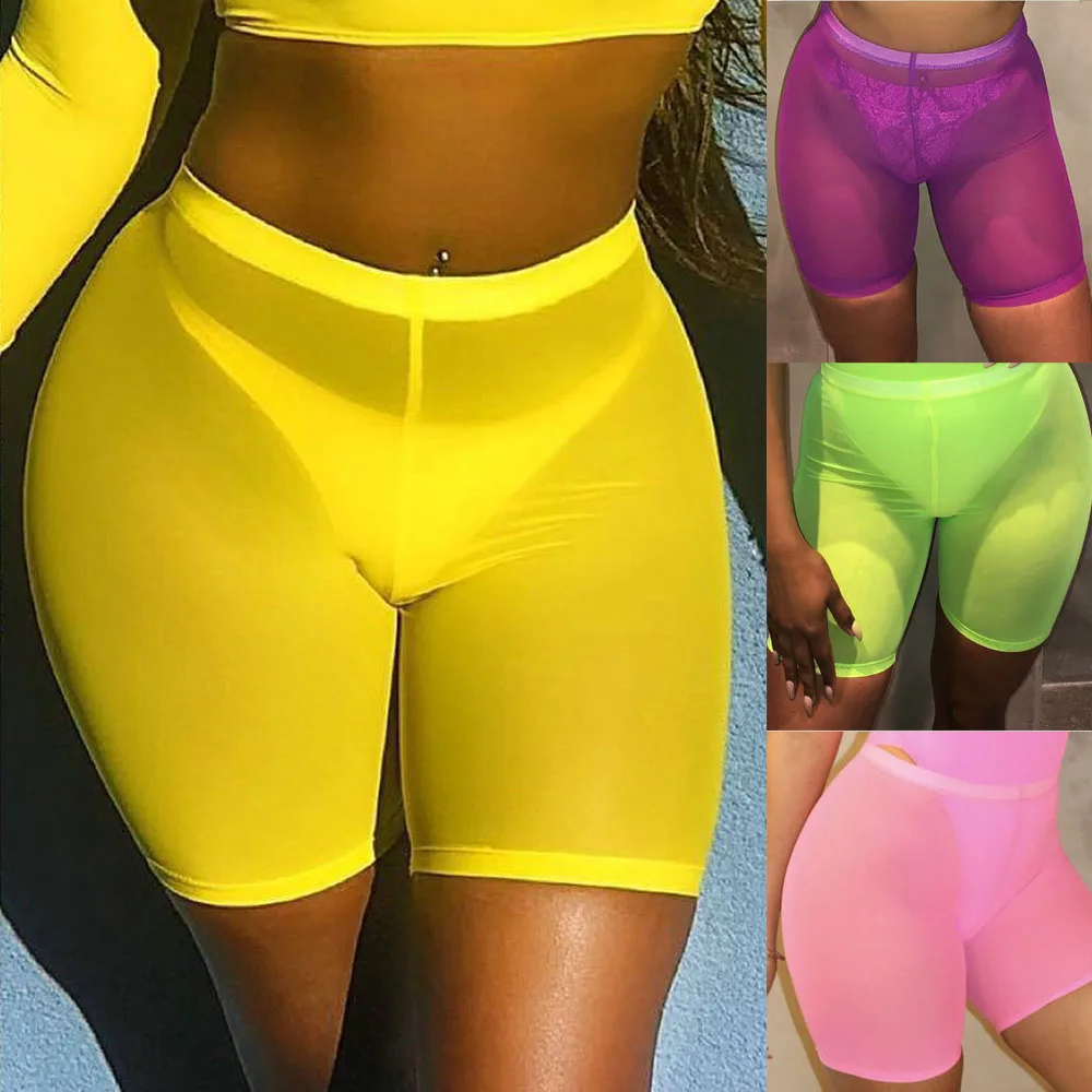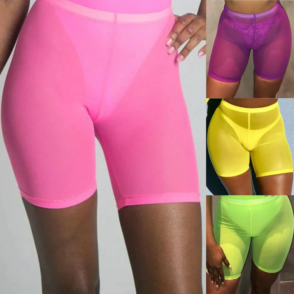 Новые женские пикантные неоновые зеленые розовые прозрачные сетчатые Шорты для плавания с высокой талией, нижняя накидка для бикини, однотонная пляжная одежда