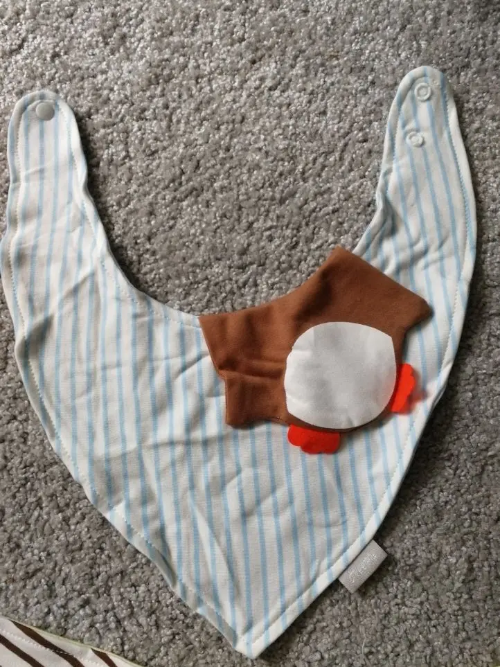 крутой слюнявчик , даже он как украшение чем слюнявчик , смотрится здорово , советую хорошие крепкие кнопки не одноразовые