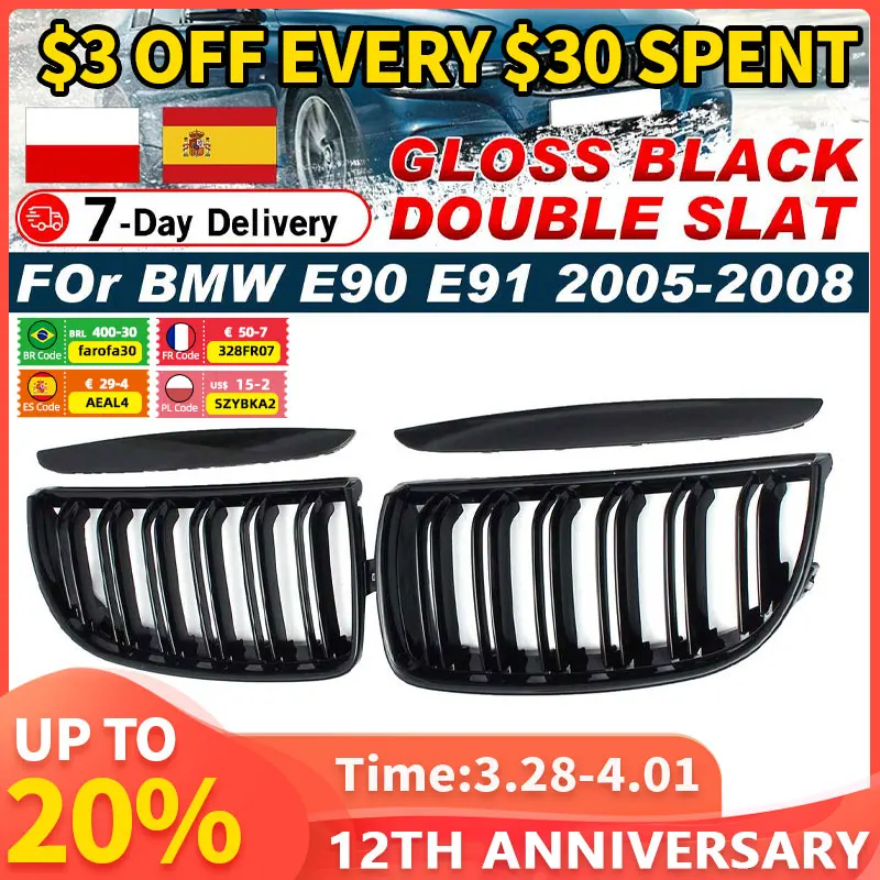 1 пара, решетка для автомобиля BMW E90 E91 2005-2008, матовая Черна...