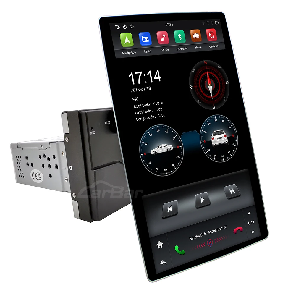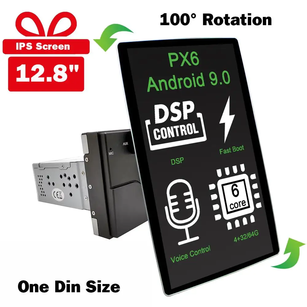 Carbar 12,8 "Android 9,0 1 Din универсальный автомобильный Радио DVD GPS плеер с Tesla стиль вращения IPS экран Автомобильный головное устройство стерео