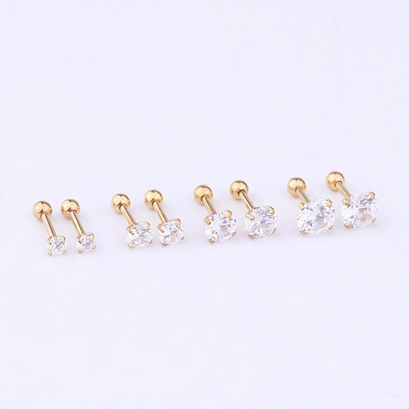 Серьга-гвоздик из нержавеющей стали с фианитом, ювелирное украшение для пирсинга со штангой, украшение для прокола Козелка, раковины, завитка ушной раковины, 3-6 мм, черного цвета, 1 шт.