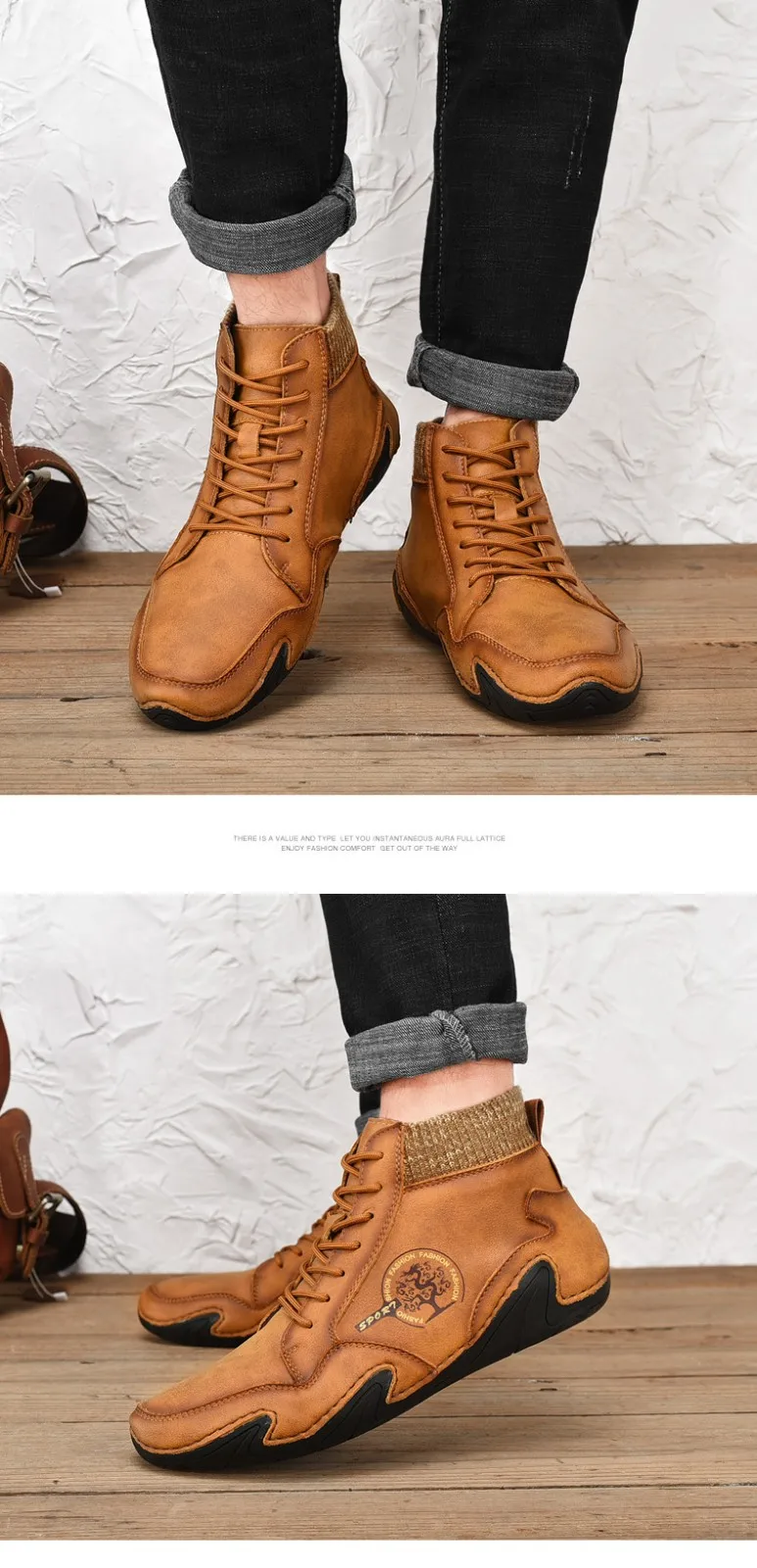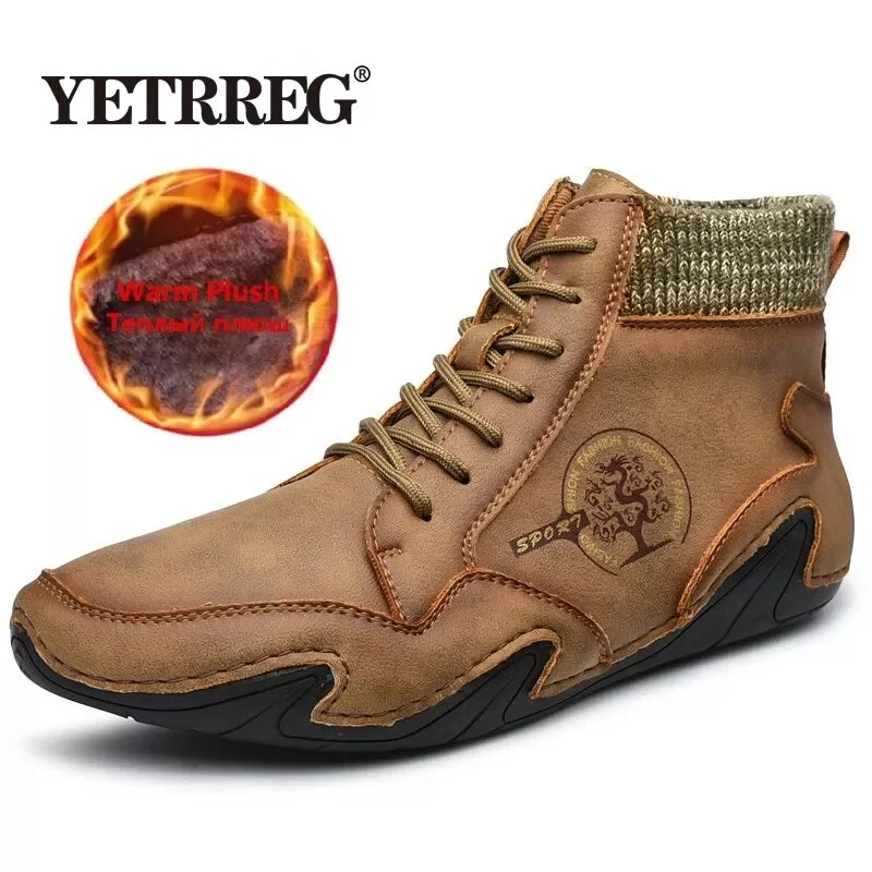 Мужские кожаные ботинки, теплые ботинки на меху, осенне-зимние ботинки, размеры 38-48
