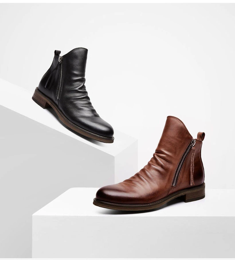 Мужские кожаные ботинки; Коллекция 2020 года; Сезон осень-зима; Ботильоны; Модная обувь на платформе с высоким берцем и бахромой; Нескользящие мужские Ботинки Martin; Большие размеры 48
