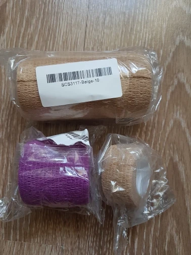 Very fast delivery, only 10 days! The bandage is soft and sticks to itself well. The beige colour is very nice.