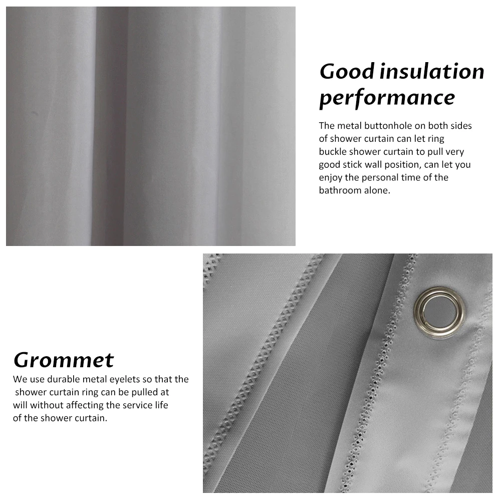 Водонепроницаемая занавеска для душа с защитой от плесени, занавеска для душа с медной пряжкой серого цвета и раздвижным крючком