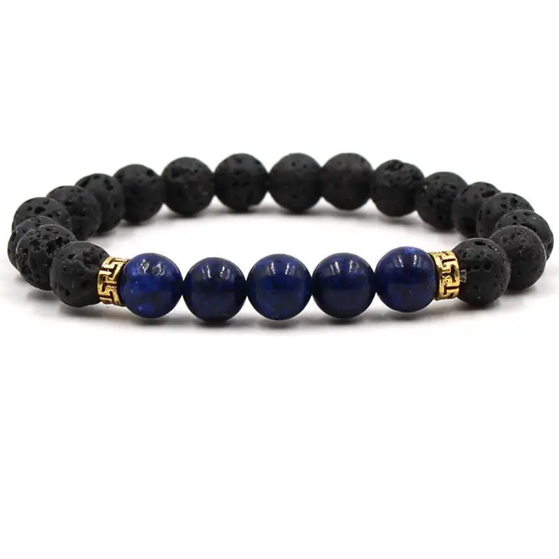 Мужской и женский браслет с бусинами из вулканического камня, 1 шт.