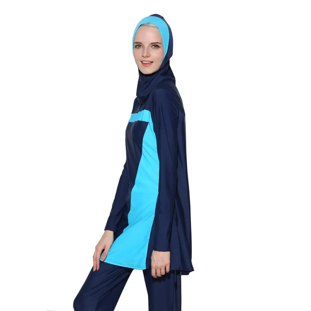 Burkini с длинными рукавами мусульманская одежда для плавания Женская Лоскутная цветная хиджаб Maillot de bain femme купальный костюм мусульманская одежда для плавания