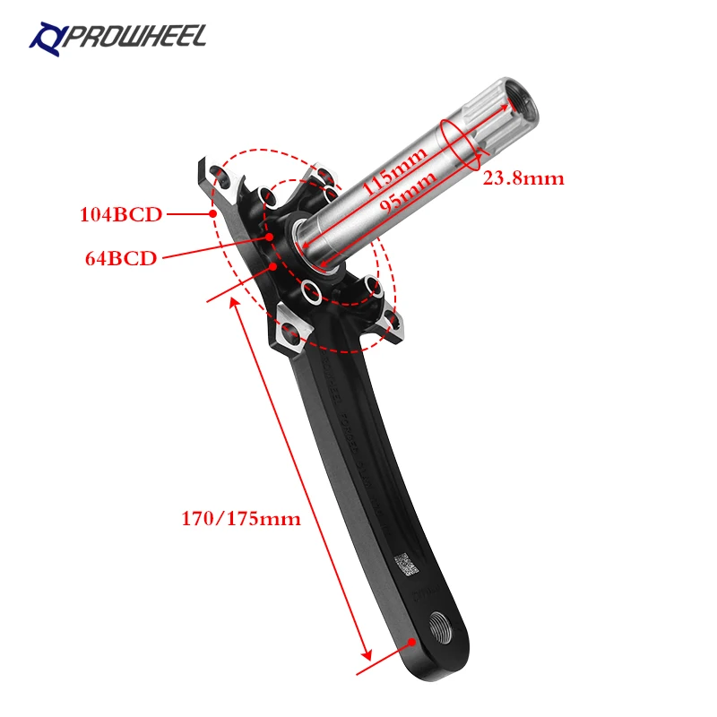 Кривошип PROWHEEL 104BCD для горного велосипеда, 170 мм, 175 мм, Кр...