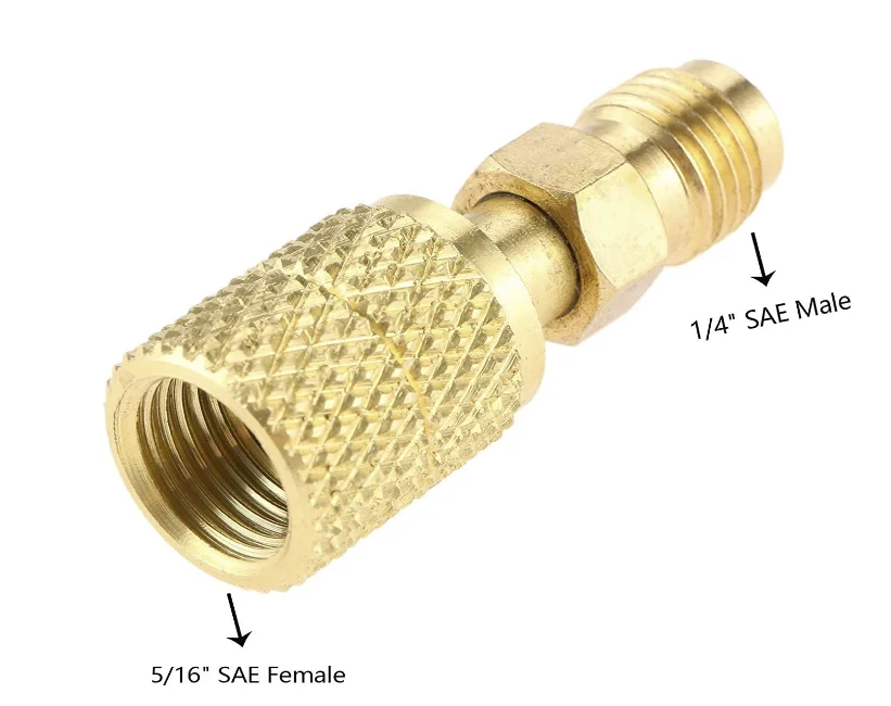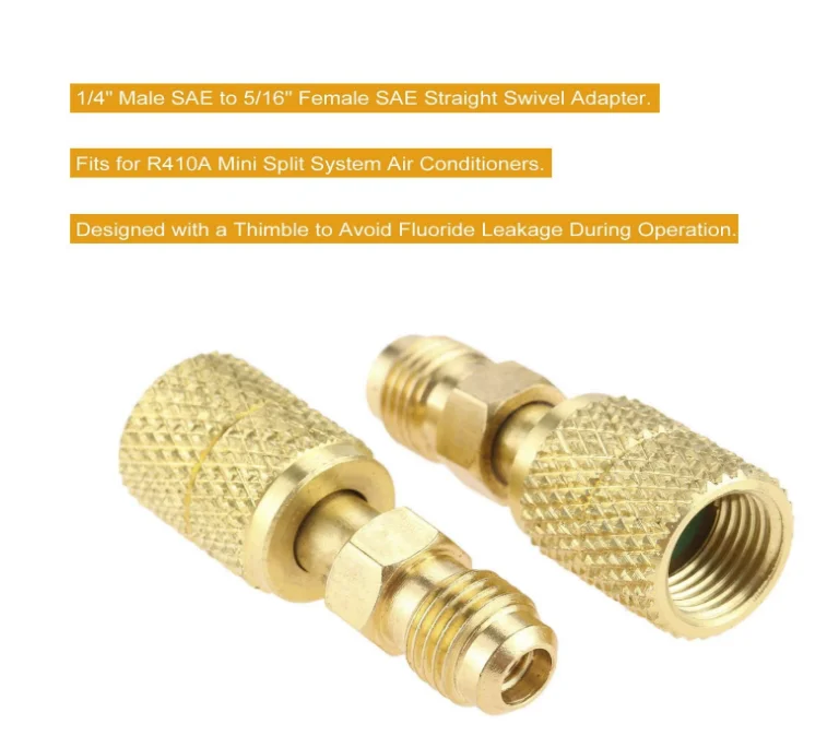 Преобразование 1/4 "male SAE в 5/16" Женский SAE Поворотный адаптер идеально подходит для R410a мини сплит-системы кондиционеров, HVAC и cservice.
