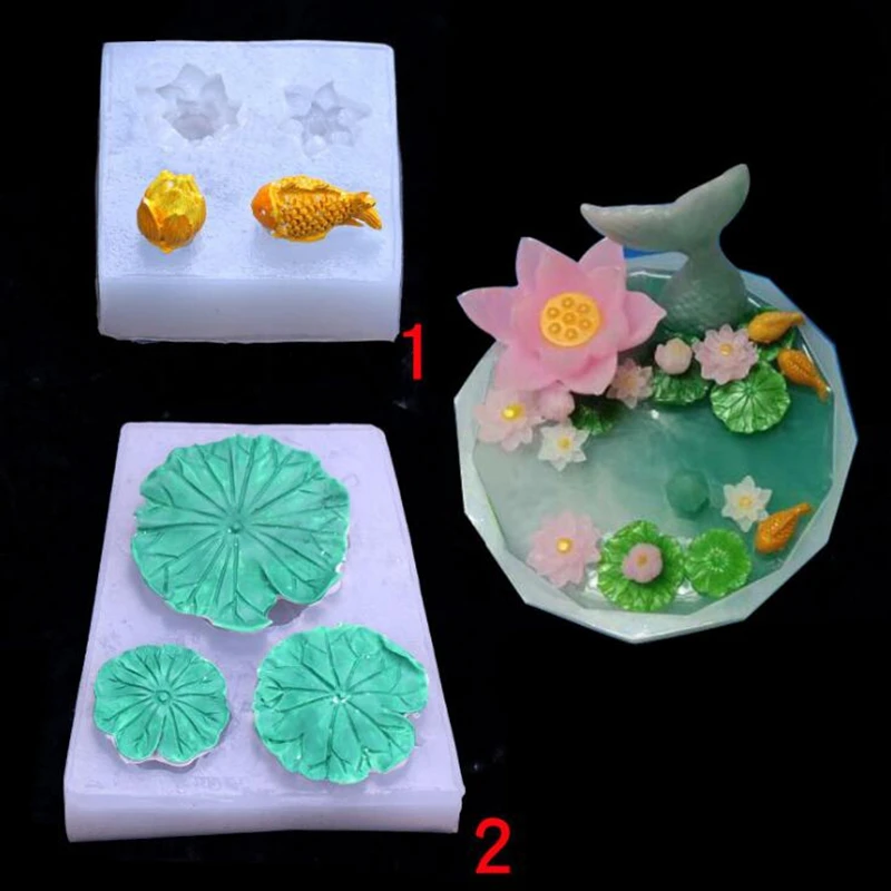 Прозрачная силиконовая форма в виде лотоса, рыбы, листьев лотоса, силиконовая форма для ручной работы, украшение для выпечки, DIY Набор клея, силиконовая форма