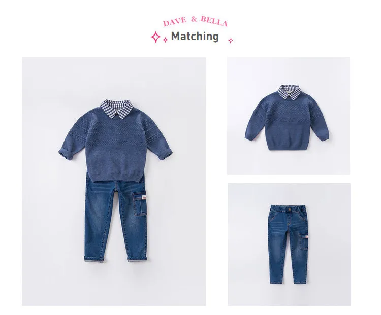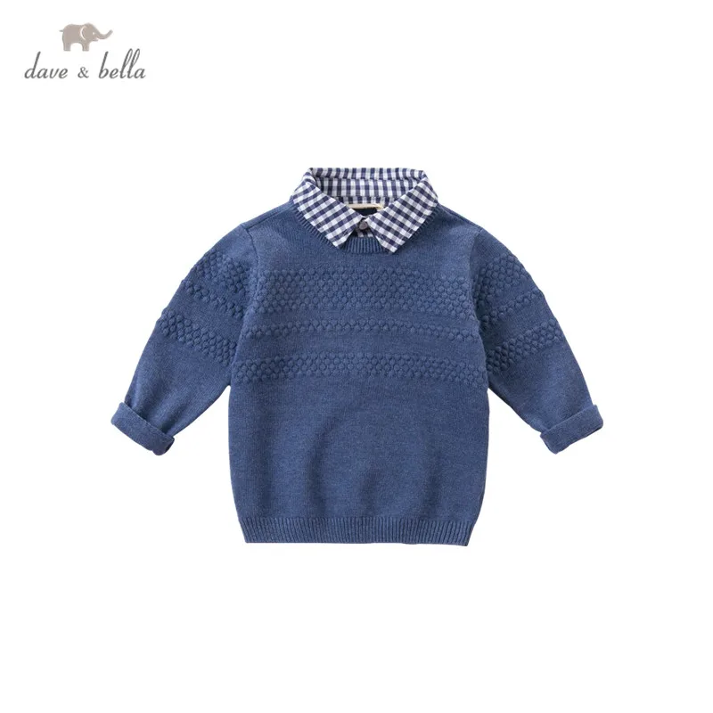 Детский клетчатый свитер для мальчиков DK16246, Модный трикотажный свитер для маленьких мальчиков, милый вязаный свитер для малышей
