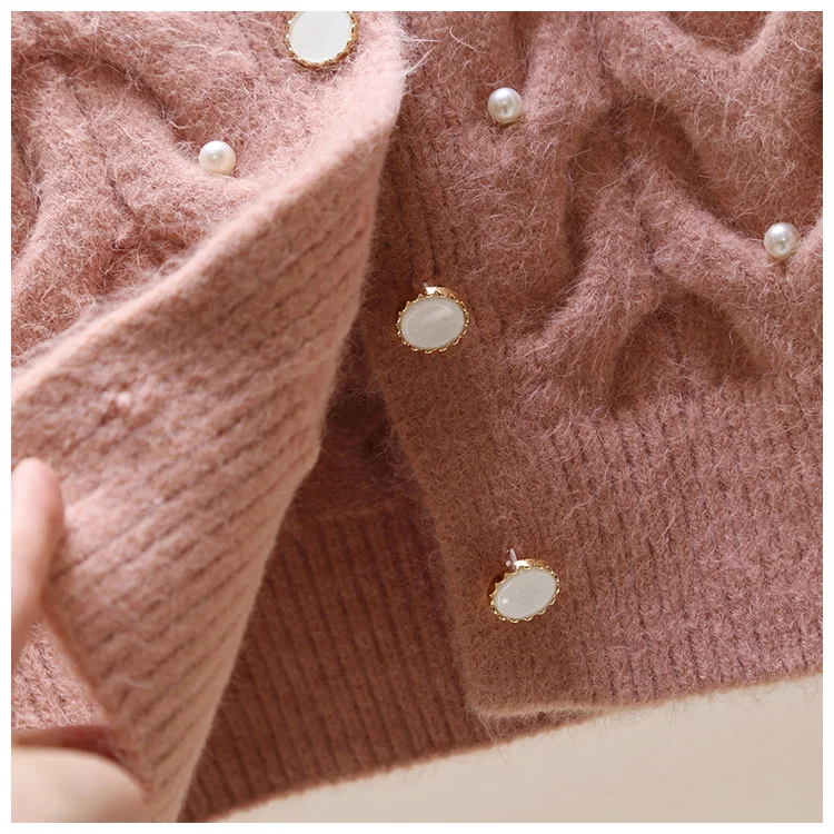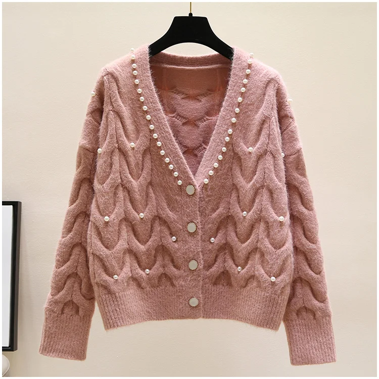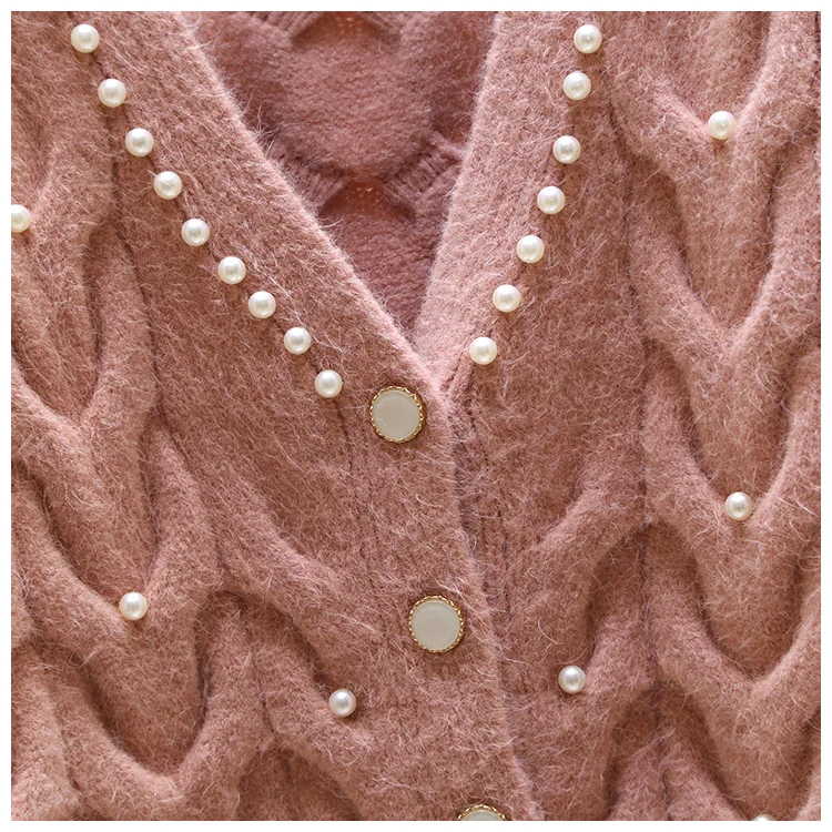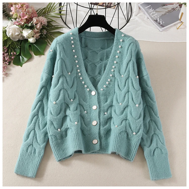 Женский трикотажный кардиган с V-образным вырезом и бусинами