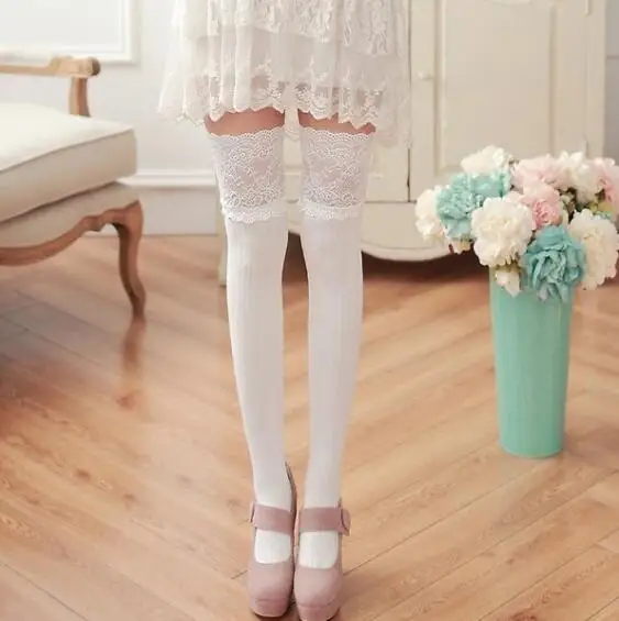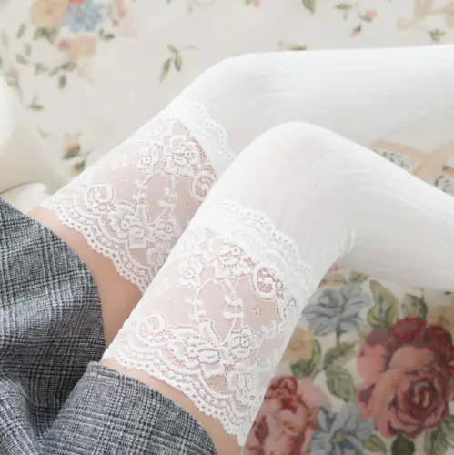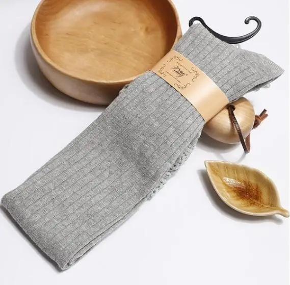 Пикантные женские чулки, теплые до бедра, выше колена, Длинные хлопковые кружевные чулки, однотонные чулки
