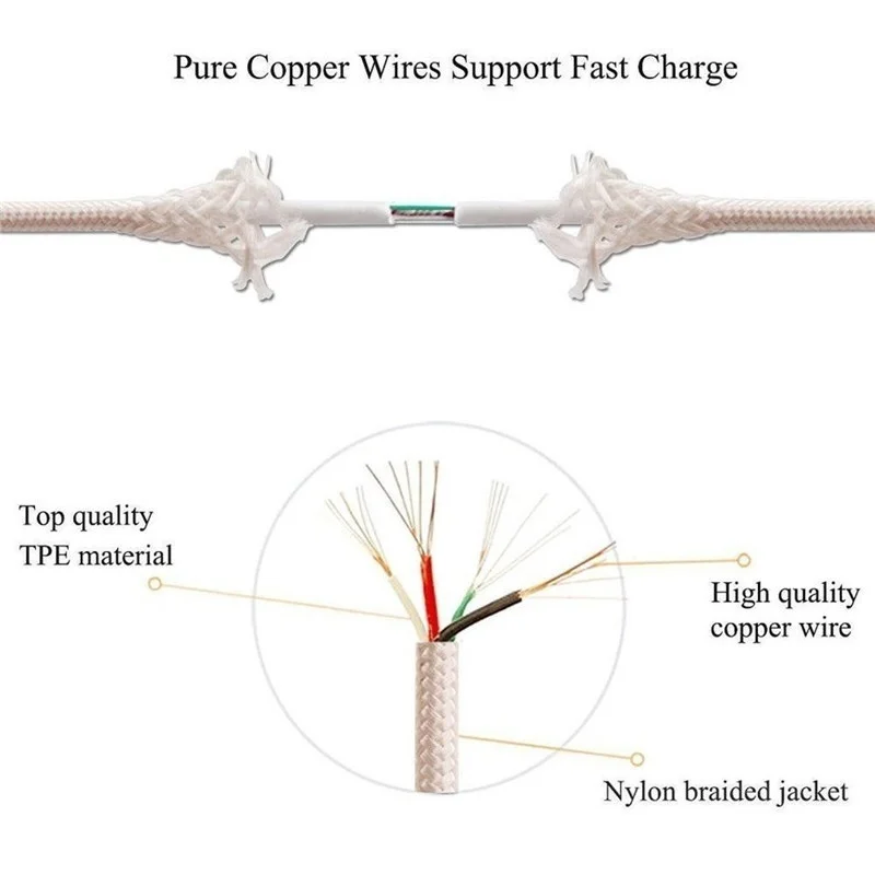 Нейлоновый плетеный кабель Micro USB Type-C Quick Charge 3,0 LED Ав...
