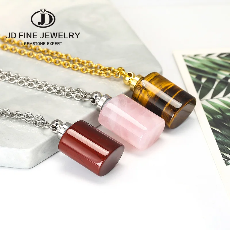JD диффузор эфирного масла подвеска в виде бутылочки парфюма ожерелье натуральный тигровый глаз камень из нержавеющей стали ювелирные изделия Прямая поставка 22 цвета