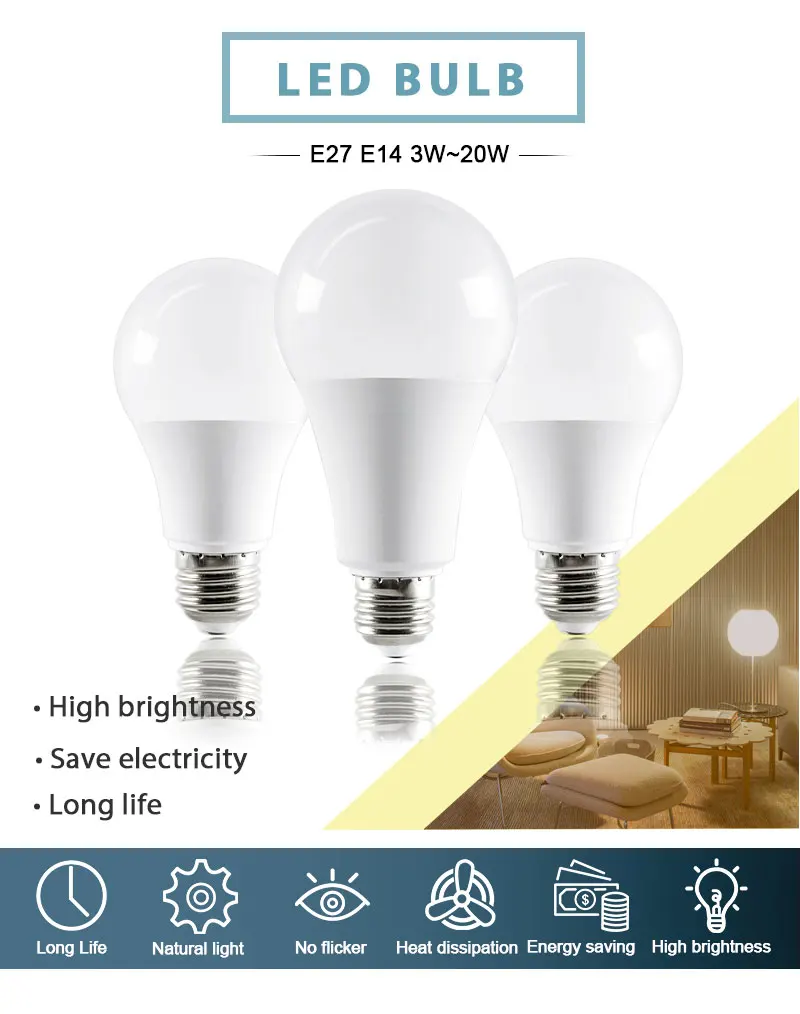 Dimmable композитный алюминиевый светодиодный светильник E14 220V Светодиодный светильник E27 3W 5W 6W 9W 12W 15W 20W лампада ампулы светодиодный