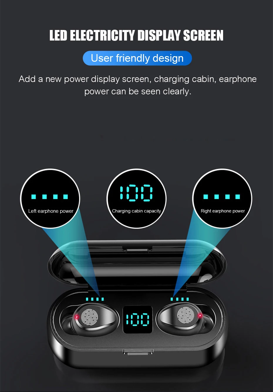 Беспроводные наушники F9, Bluetooth 5,0, TWS HIFI, мини-наушники-вкладыши, Спортивная гарнитура для бега, поддержка телефонов iOSAndroid, HD-звонки