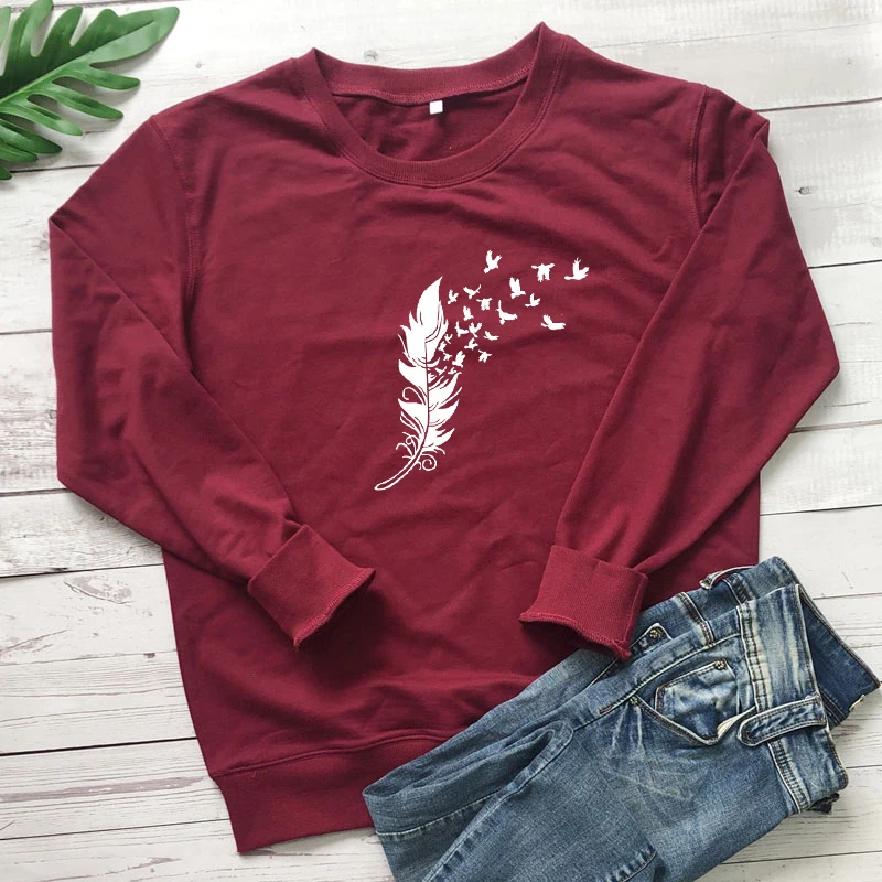 Женский пуловер с длинным рукавом, свитшот с изображением птиц и перьев в летающем стиле