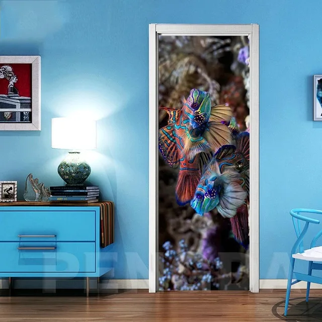 Самоклеящаяся 3D Наклейка на стену, новая наклейка на нижнюю часть рыбы, для украшения дверей дома, рисунок на холсте для обновления