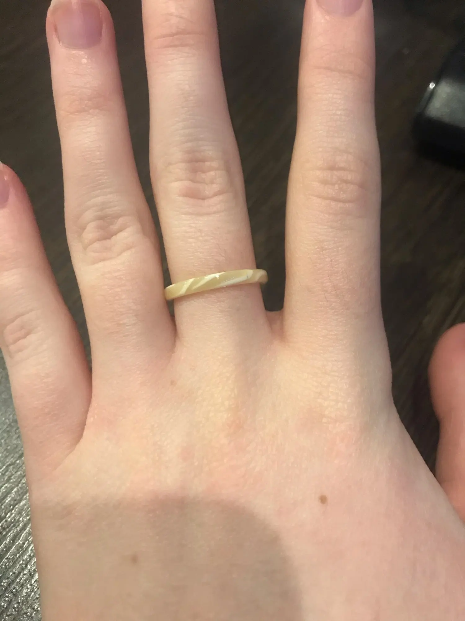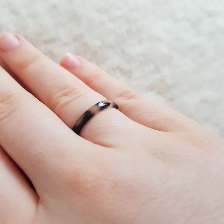 Кольцо тонковато, и мне налезло на безымянный палец, на средний и указательный с натяжкой.