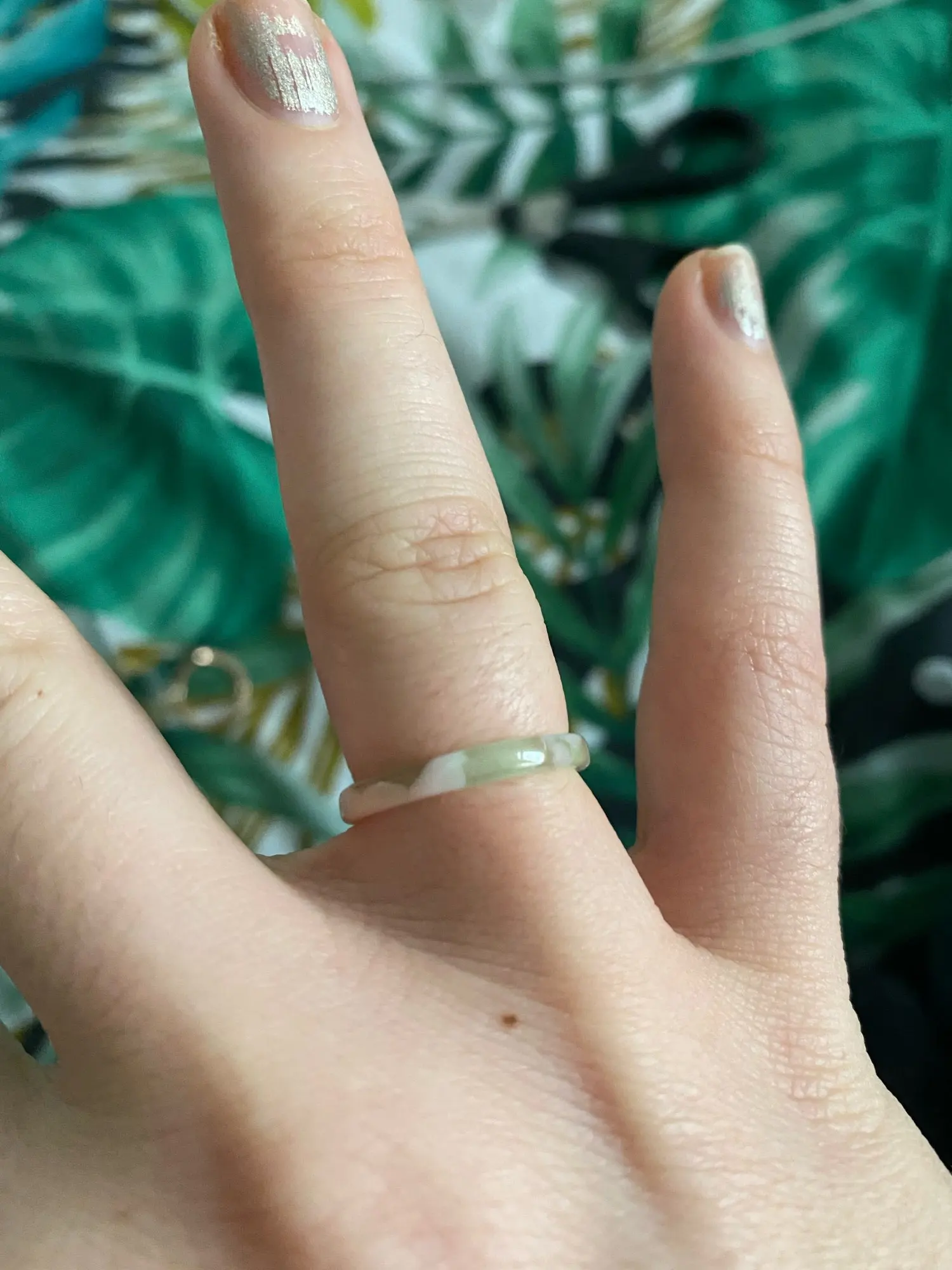 Ожидала немного другой тон. Но в целом симпатичное:) Удобное. Налезает не на все пальцы. (У меня размер 17) доставка меньше месяца. Возможно ещё закажу другого цвета))
