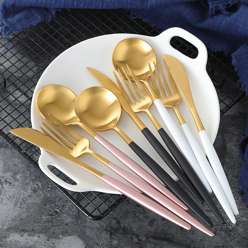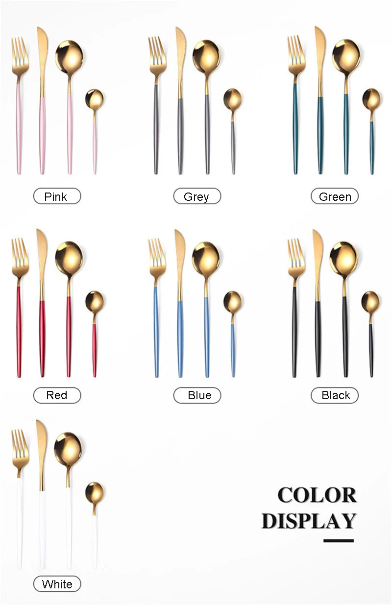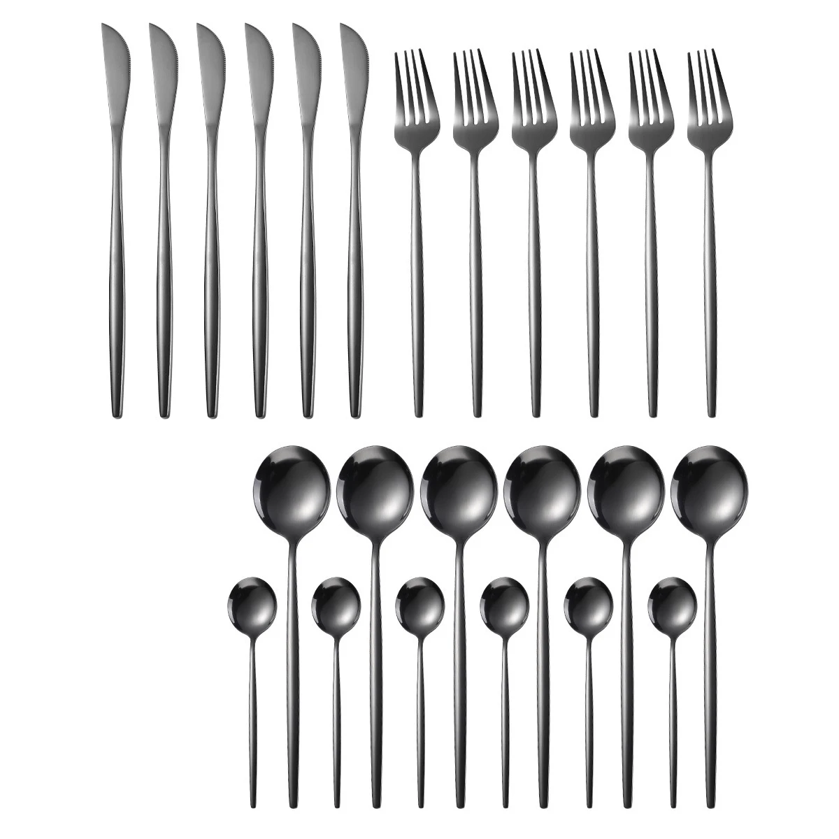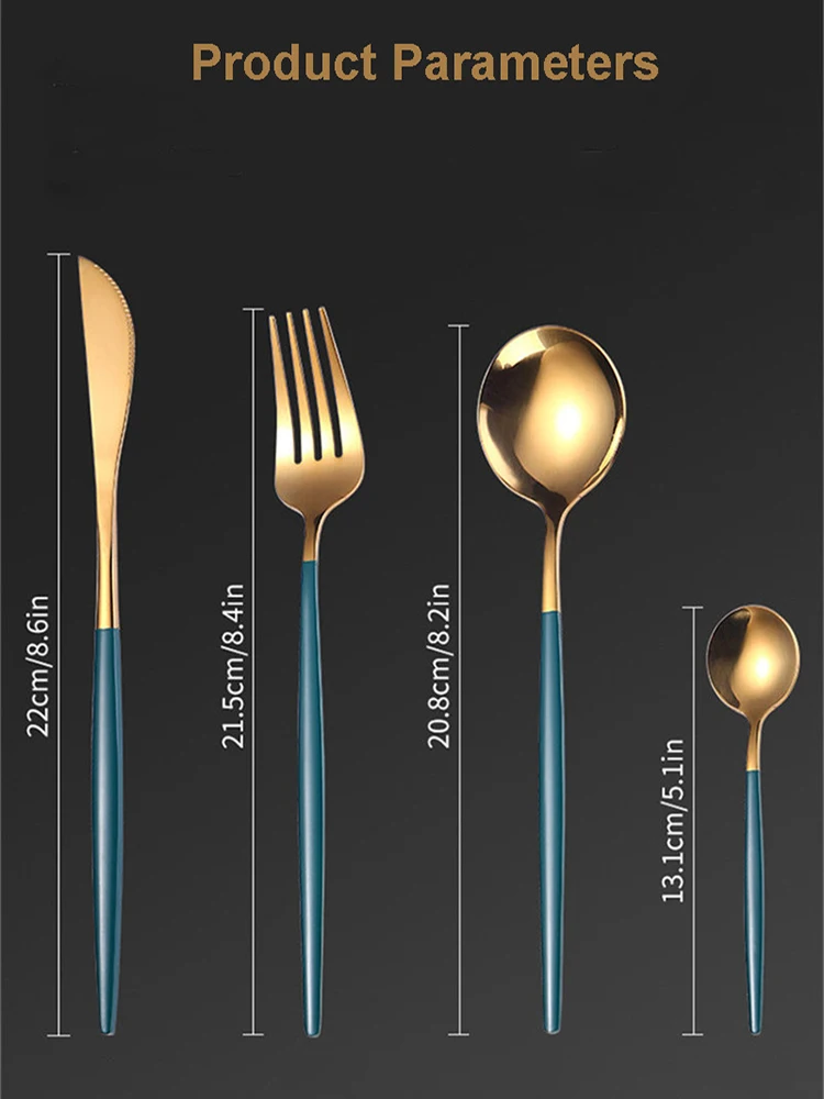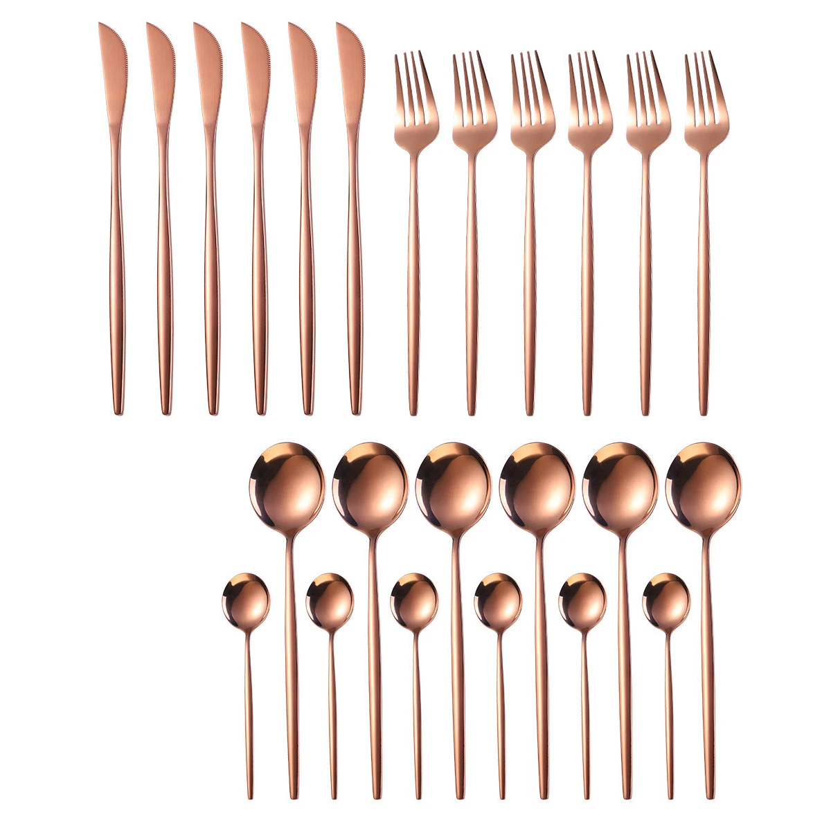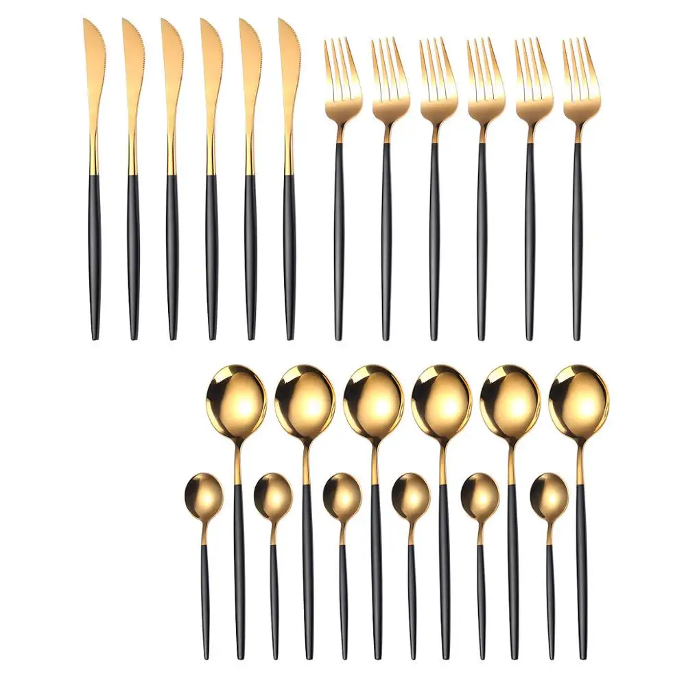 Набор золотых столовых приборов, 24 дюйма, комплект столовых приборов дюйма, из нержавеющей стали, набор ножей вилка, ложка, посуда, украшение для домашнего стола