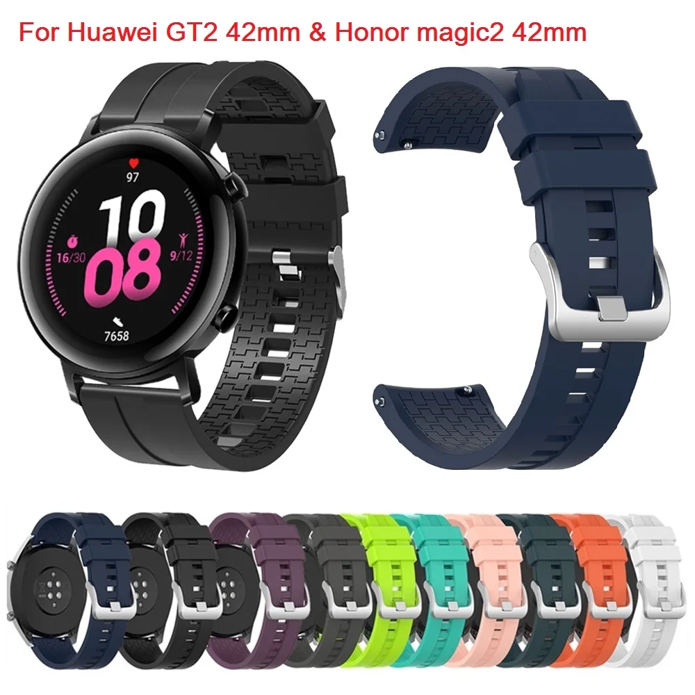 Ремешок силиконовый 20 мм для смарт-часов Huawei GT 2 42 мм, спортивный браслет для Honor magic 2 42 мм, оригинальные аксессуары для наручных часов