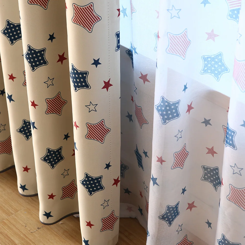 Двухслойные затемняющие шторы с полыми звездами, для гостиной, детс...