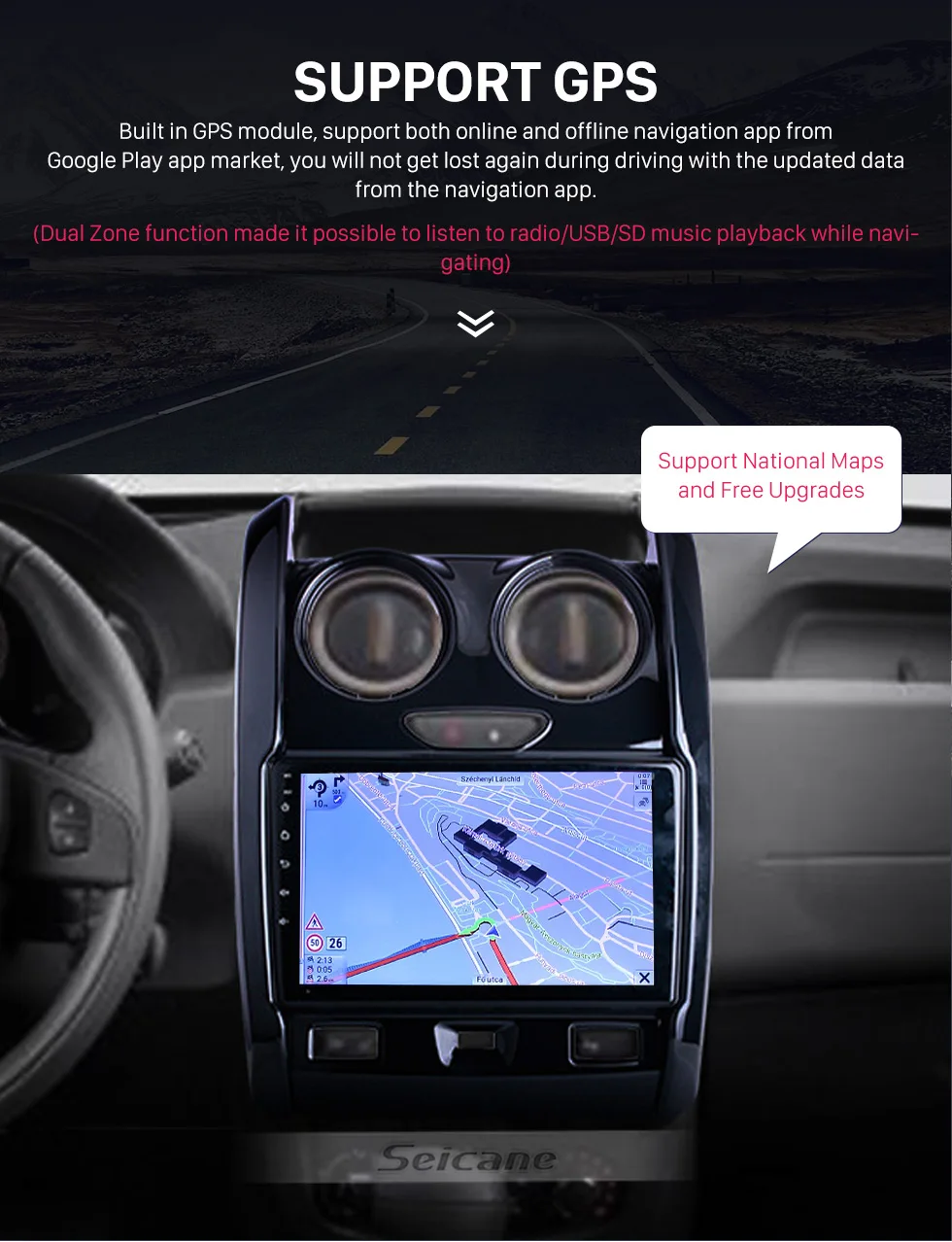 Автомагнитола Seicane, 2 DIN, Android 10,0, 9 дюймов, 2 Гб ОЗУ, 32 Гб ПЗУ, GPS-навигация, сенсорный экран, для Renault Duster 2015, 2016, 2017-2020