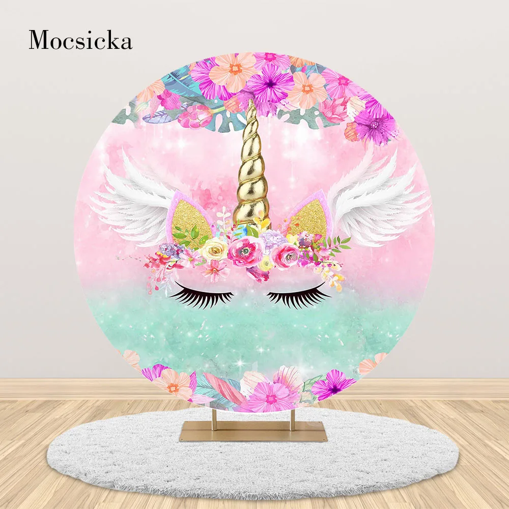 Единорог день рождения фон розовый Радуга облако Единорог Девушка В...