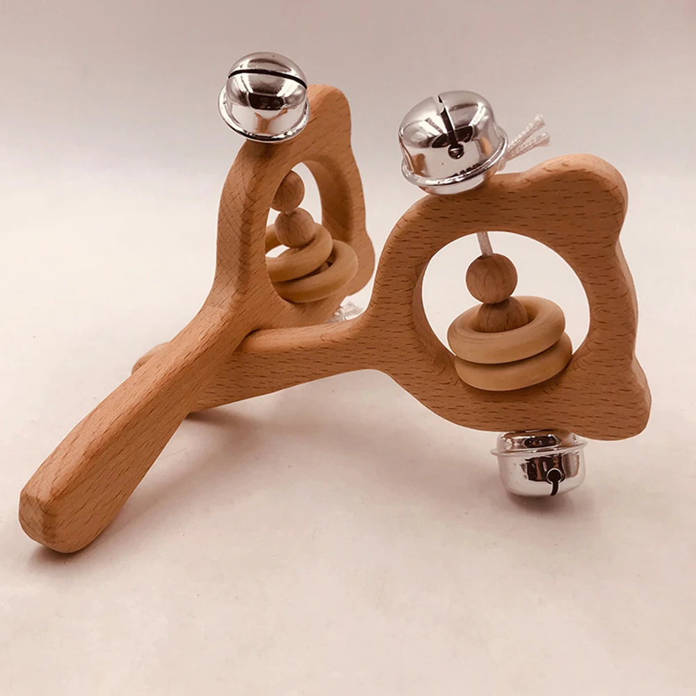 Детская игрушка-прорезыватель в форме медведя, деревянная ручка для прорезывания зубов, погремушка, колокольчик, Детские Жевательные бусы, игрушка для прорезывания зубов