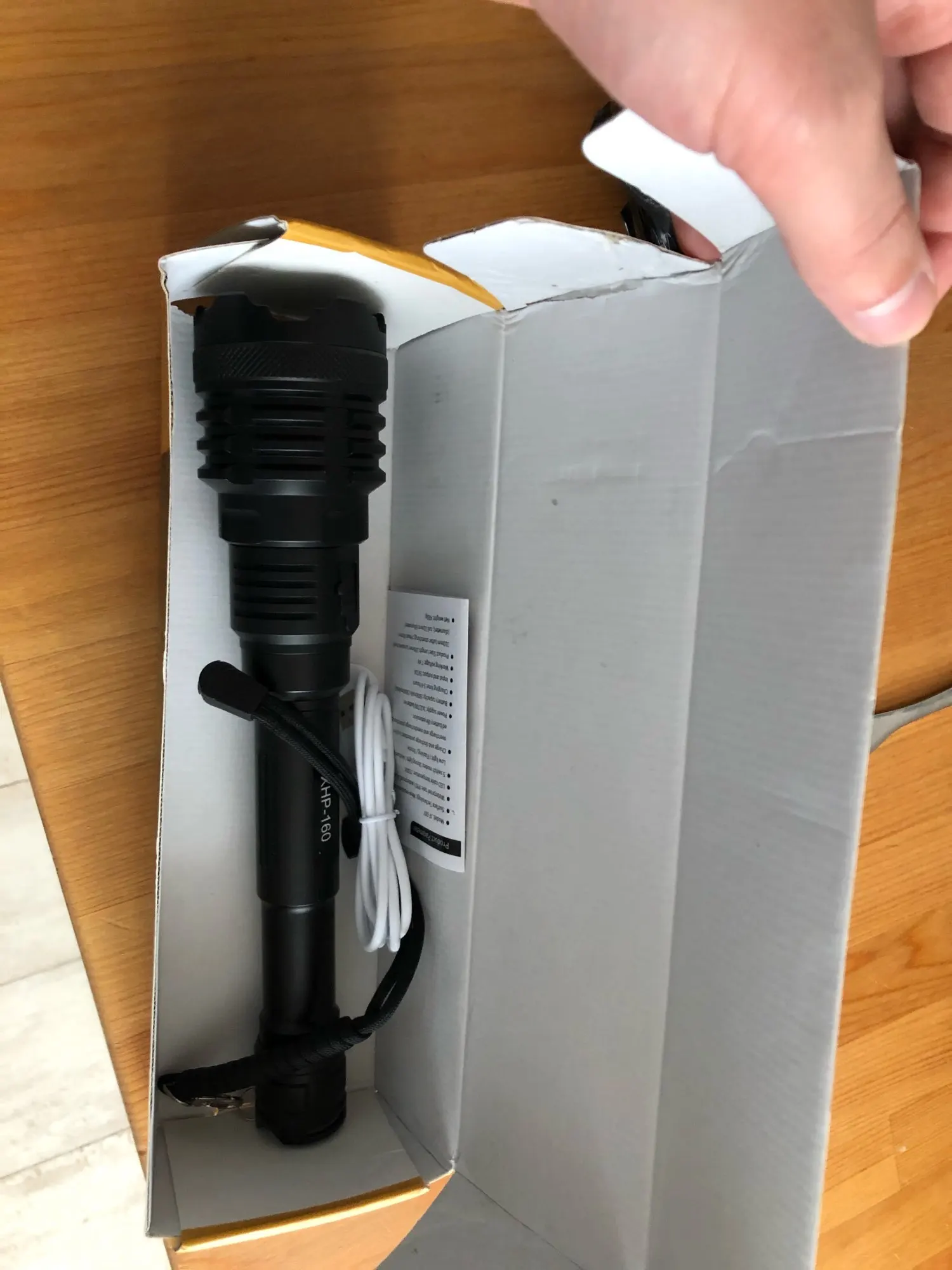 доставка очень очень долгая 3 месяца. у фонаря мощный ,яркий свет ,но в фокус не собирается ,светит прямоугольным пучком.фонарь выглядит красиво. в комплекте шнурок , шнур для зарядки и описание, есть выход на подзарядку телефона.