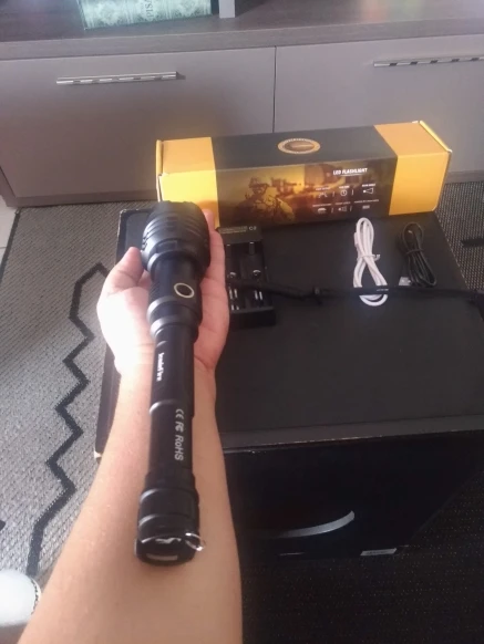 Быстрая доставка. Отличное качество. Фонарь просто огонь. Отличное качество. Светит однозначно не хуже двух автомобильных фар. Фокус регулируется. Светодиод соответствует описанию. Аккумуляторы пришли полностью заряженными, вставлены в фонарь и защищены изоляционной прокладкой от случайного включения. Человек заказал для охоты. Однозначно рекомендую. Корпус массивный, крепкий - если что подранка можно смело добить фонарем