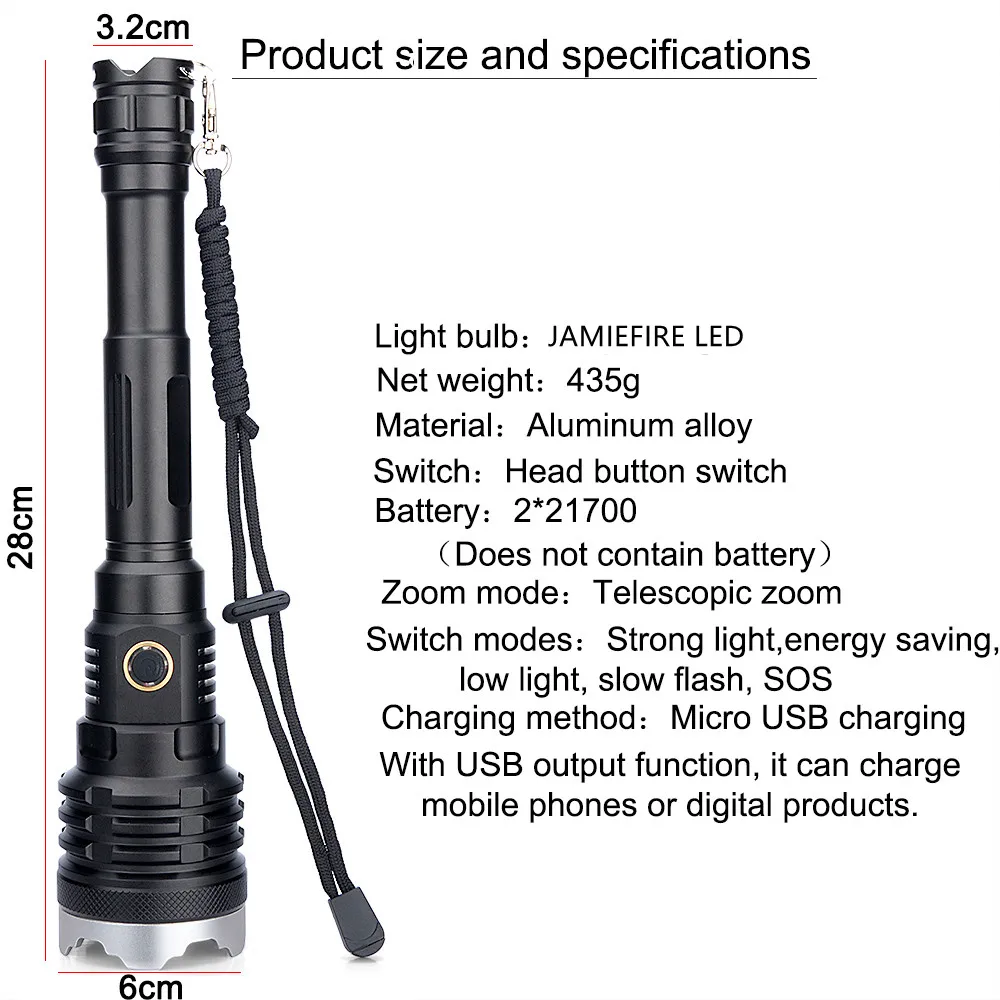 JamieFire LED мощный фонарь USB Перезаряжаемый тактический охотничий фонарик 21700 Zoom лампа светодиодсветодиодный вспышка Масштабируемая