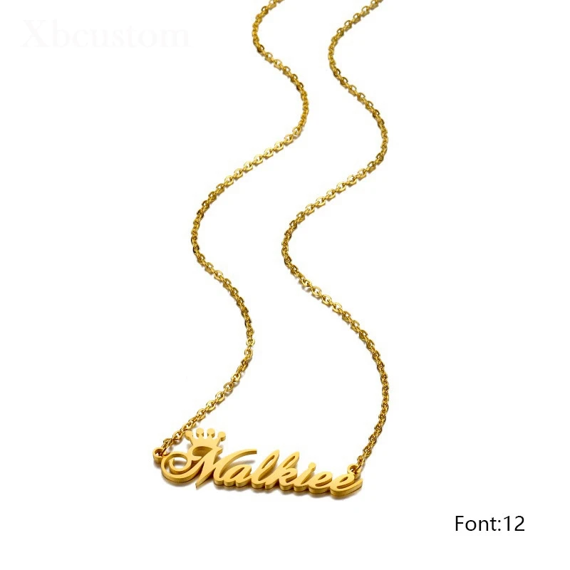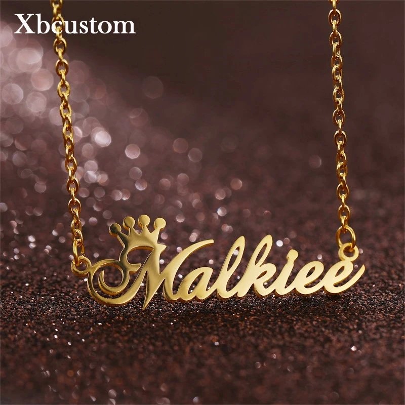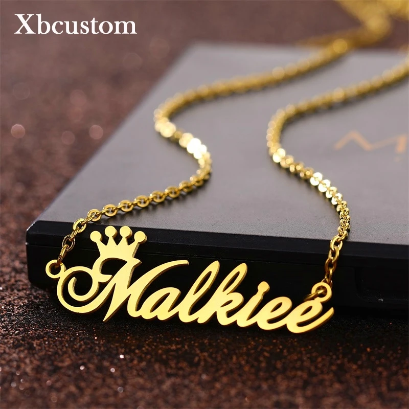 Ожерелье с именем Корона заказ цепочка из нержавеющей стали для женщин и мужчин золотистый чокер с индивидуальными буквами ожерелья с именной табличкой подарок