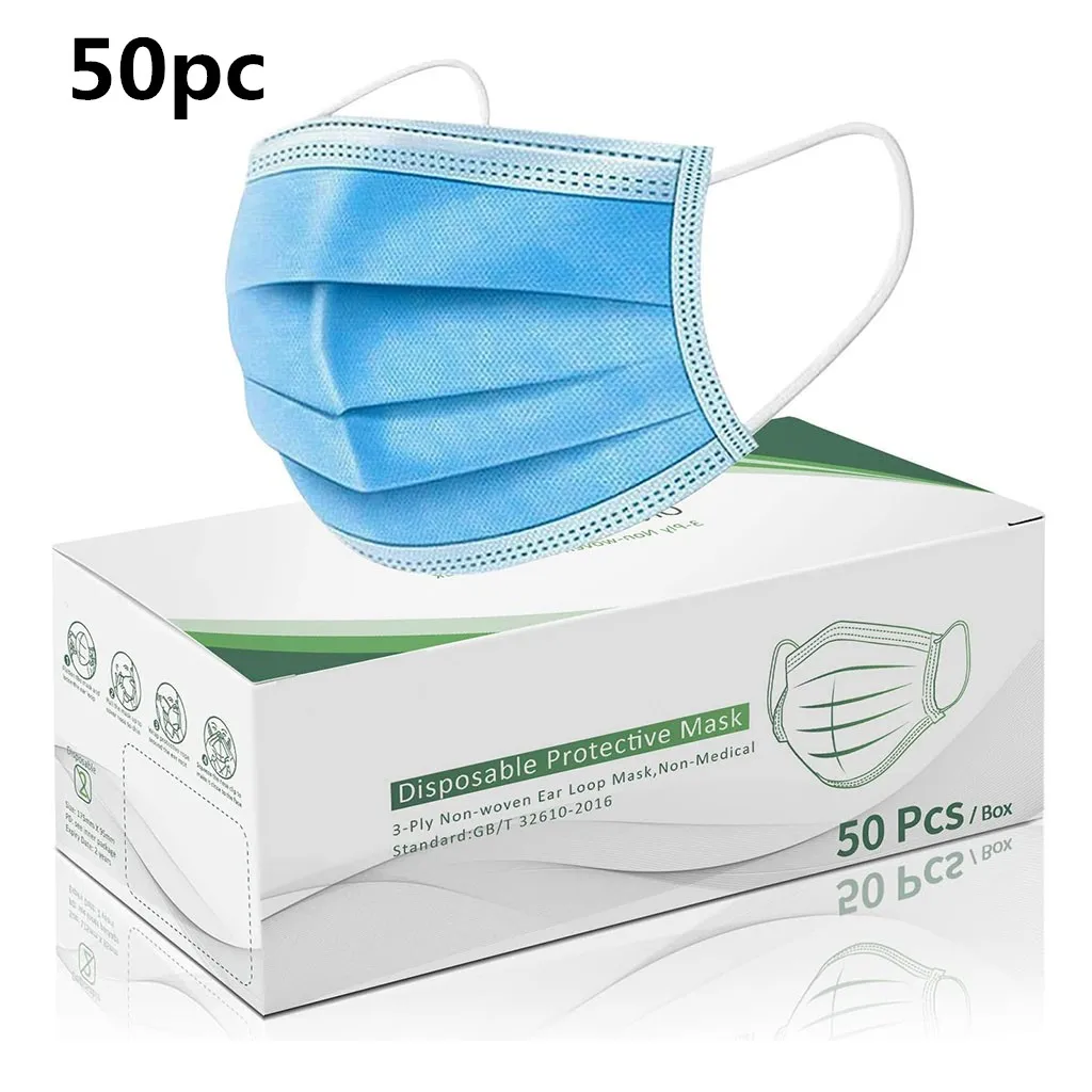 50 шт. хорошее качество Одноразовые 3-слойные фанерные дышащая уход за кожей лица маска для ухода за губами петли уха, в розовом, синем и черном цвете одноразовая маска поставки Вечерние